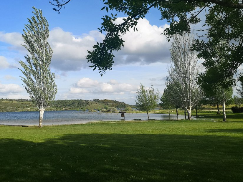Possui zonas de relvado, para descansar, ao sol ou não, pois existem várias zonas de sombra criadas pelas árvores.