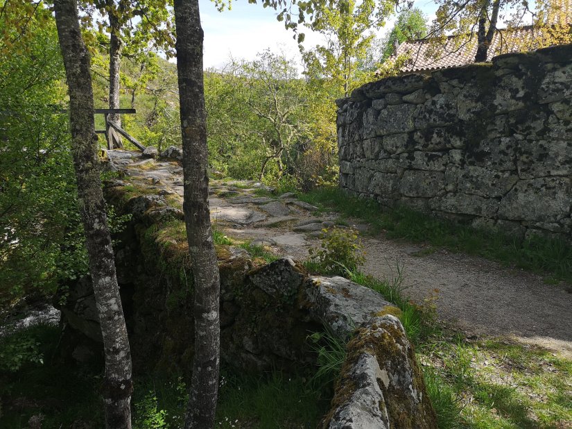 Uma ponte de madeira, junto ao mosteiro, permite atravessar o riacho e poder observar o edifício da outra margem.