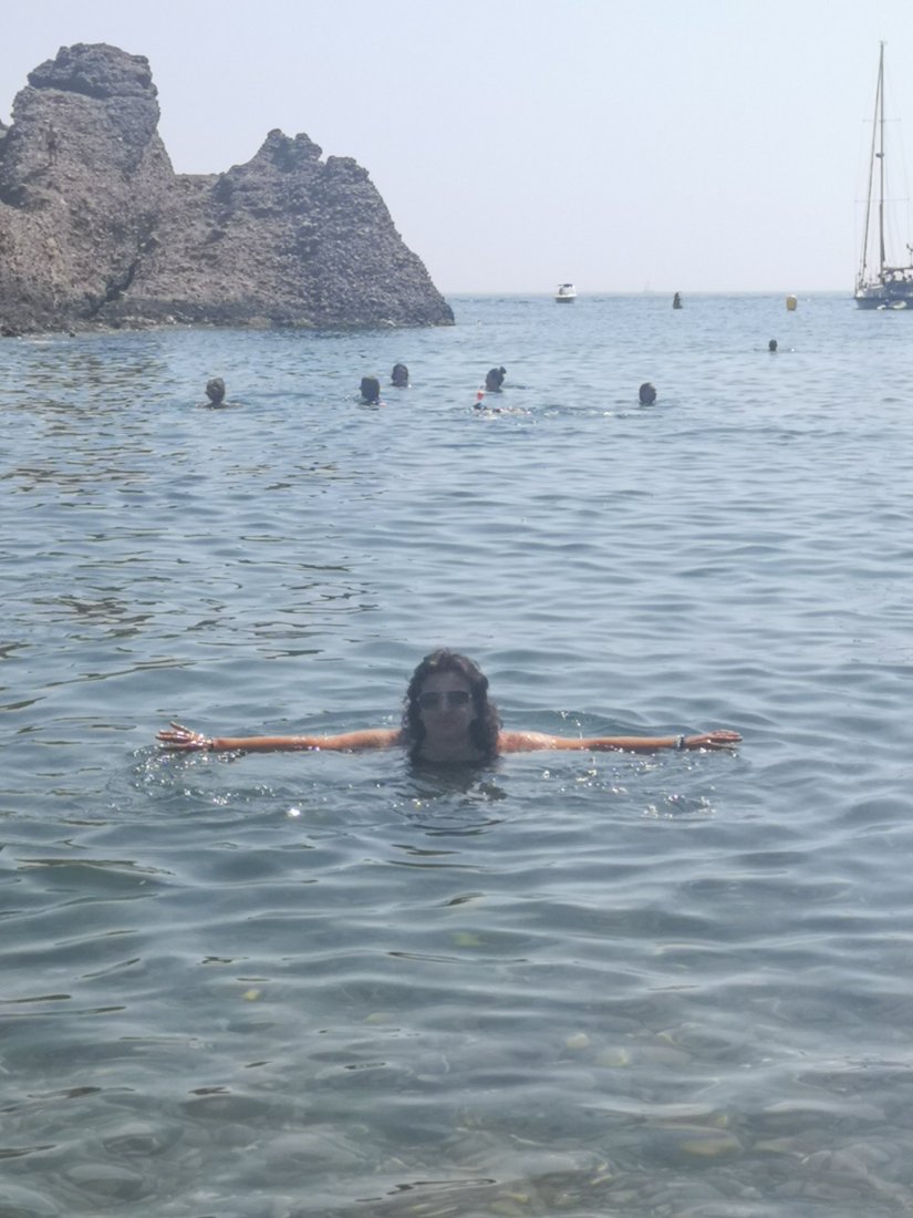 A água é turquesa. Apetece logo mergulhar. Percebe-se, de imediato, que é um local de mergulho submarino, pelo número de pessoas com equipamentos para este tipo de atividade.