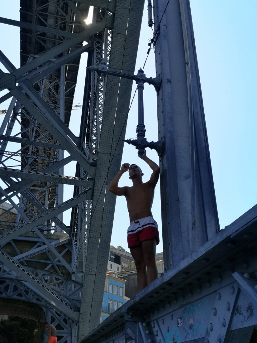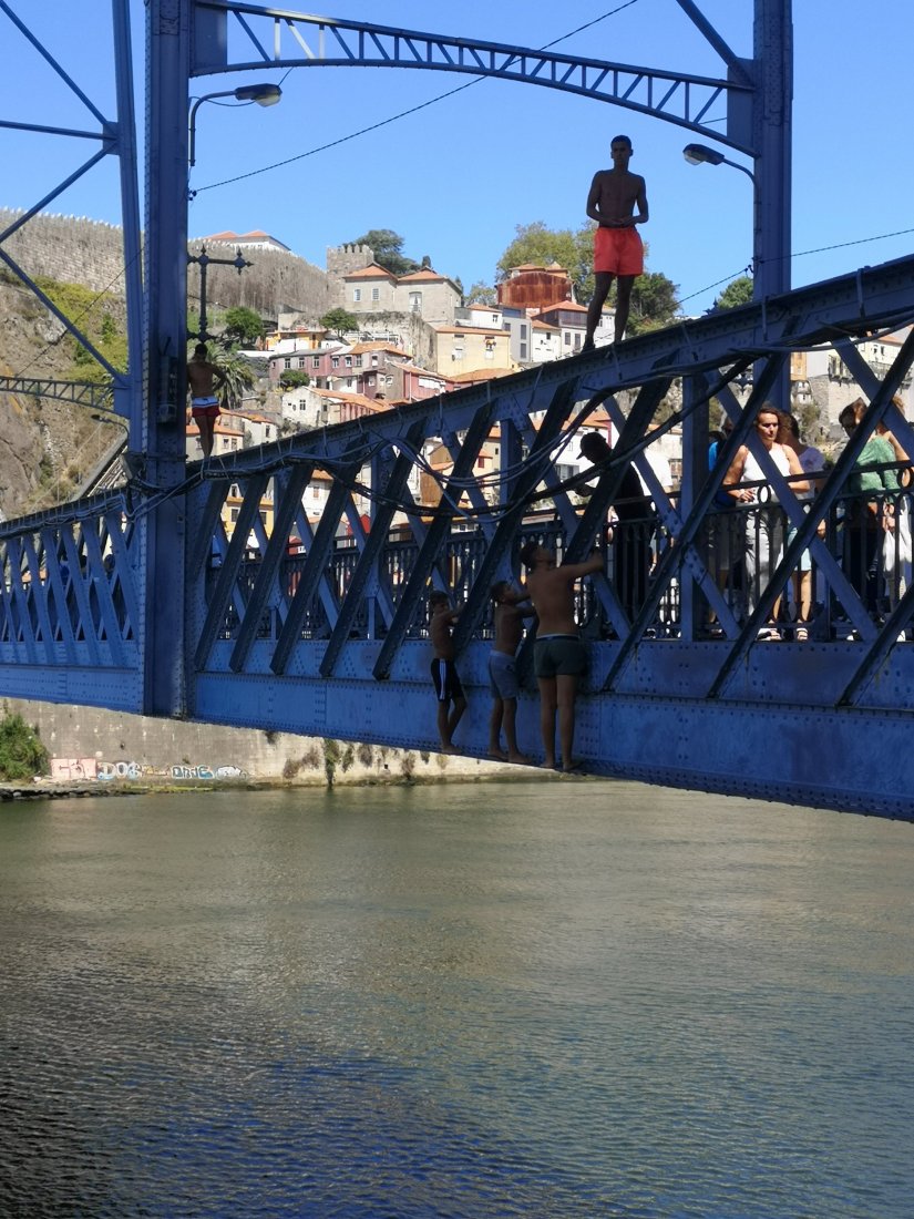 Da ponte as crianças da Ribeira costumam mergulhar nas águas do rio Douro.
