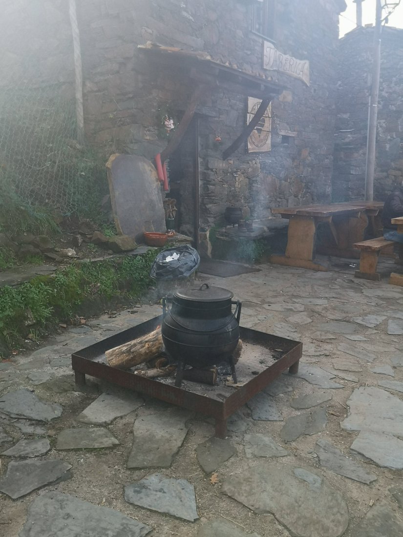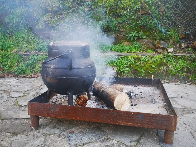 Tudo parecia ser delicioso, por isso foi necessária alguma ajuda por parte dos proprietários. Uma das propostas foi um magnífico caldo feito no pote, que estava a ser cozinhado mesmo ao lado numa fogueira.