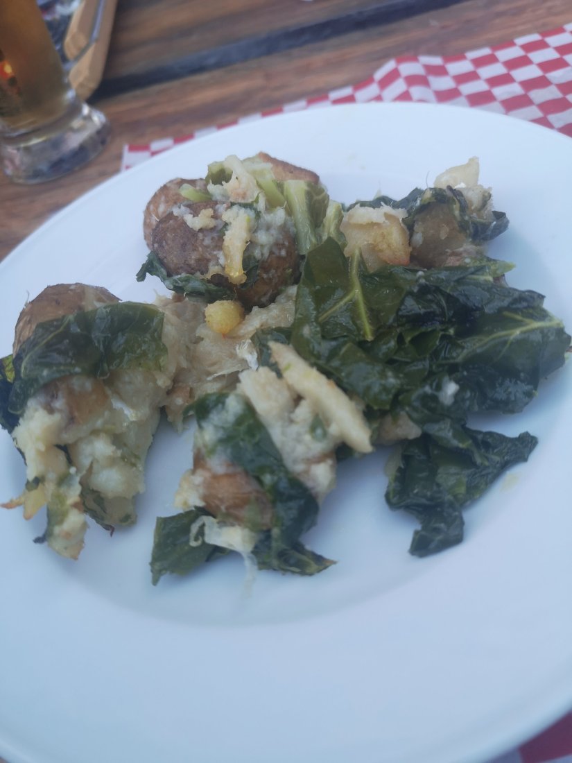 Depois de tentar arranjar uma mesa no interior, com medo do frio, rápidamente desistimos, pois eram muito poucas e praticamente só disponíveis para reservas. O que não tínhamos feito. Por isso, aceitamos com agrado a proposta de almoçar nas longas mesas de madeira no exterior. Até porque nesse dia estava um rico sol.A ementa é muito típica, com especialidades daquelas regiões serranas.