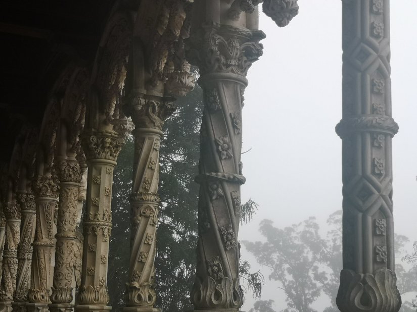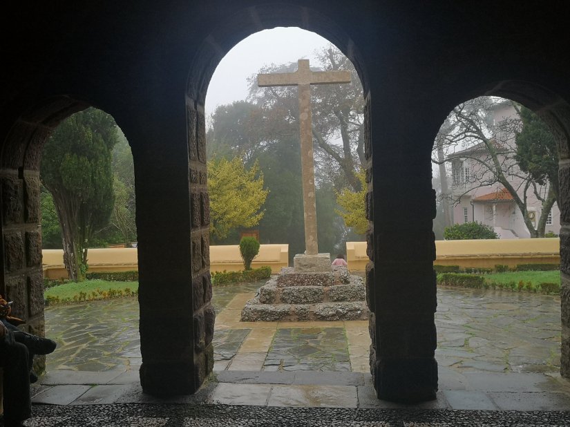 É um lugar de paz, aproveitei para me sentar no interior e apreciar os detalhes de um dia de nevoeiro, através dos seus pormenores arquitetónicos.