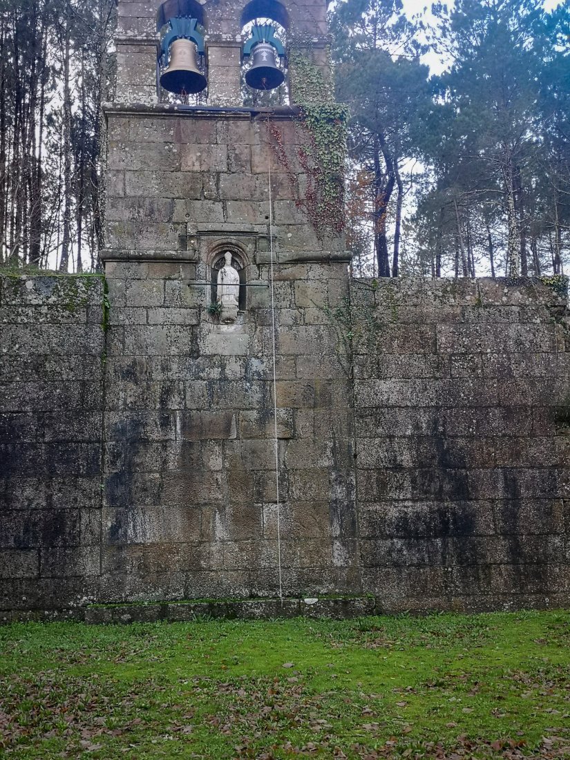 A entrada principal fica nas traseiras do edifício, mesmo em frente à torre sineira, que se encontra afastada da igreja, encaixada num muro do adro. É, para mim, o mais bonito pormenor deste templo.
