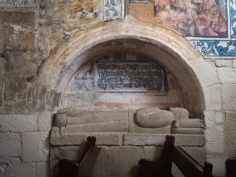 Do lado da epístola, está localizado o túmulo de Afonso Anes Barroso, escudeiro de D. Afonso I, Duque de Bragança. Sepultura, que data de 1459, com uma tampa que representa um figura humana deitada, que tem na parte superior, um travesseiro sob a cabeça e aos pés um pequeno animal.