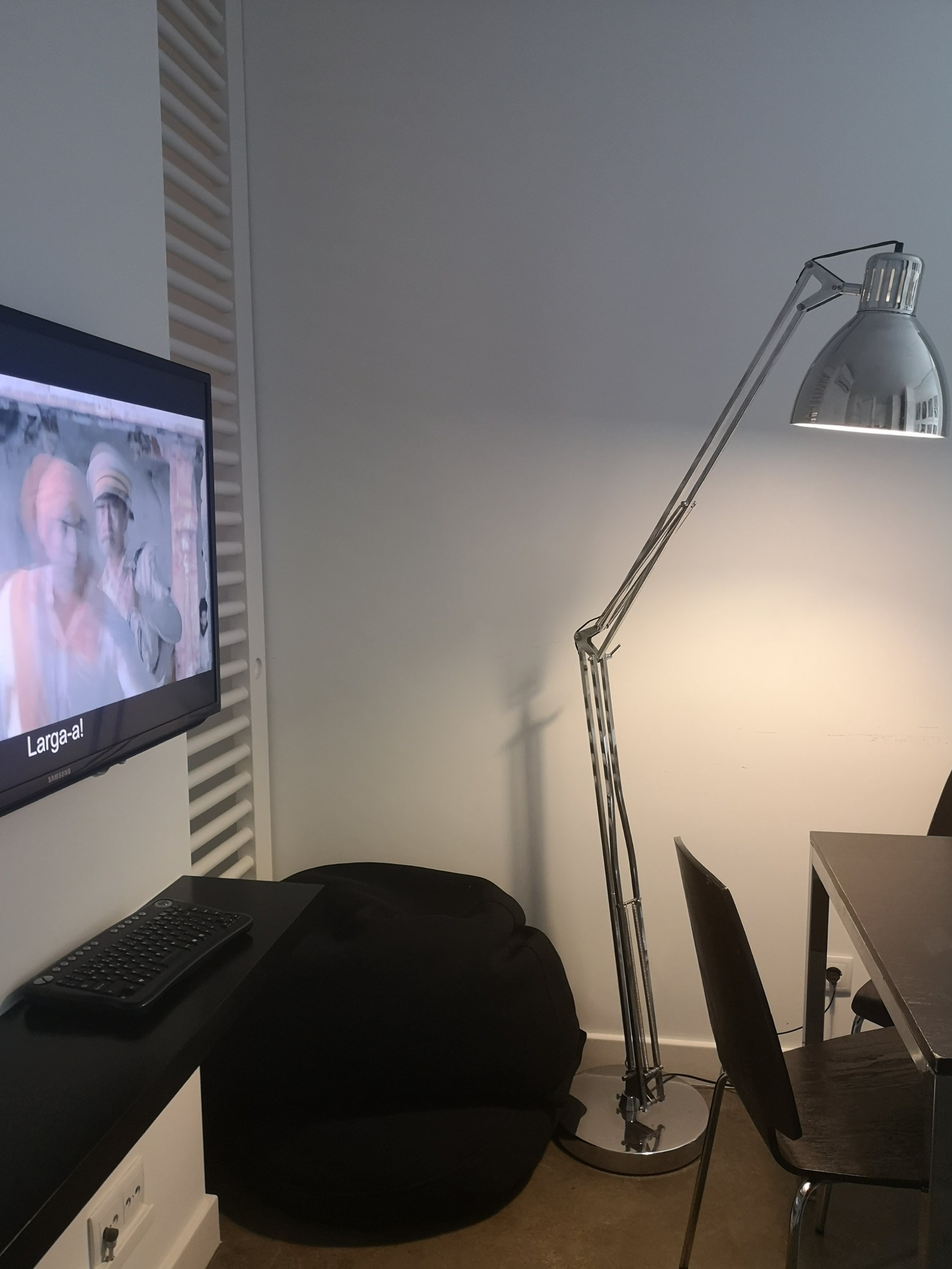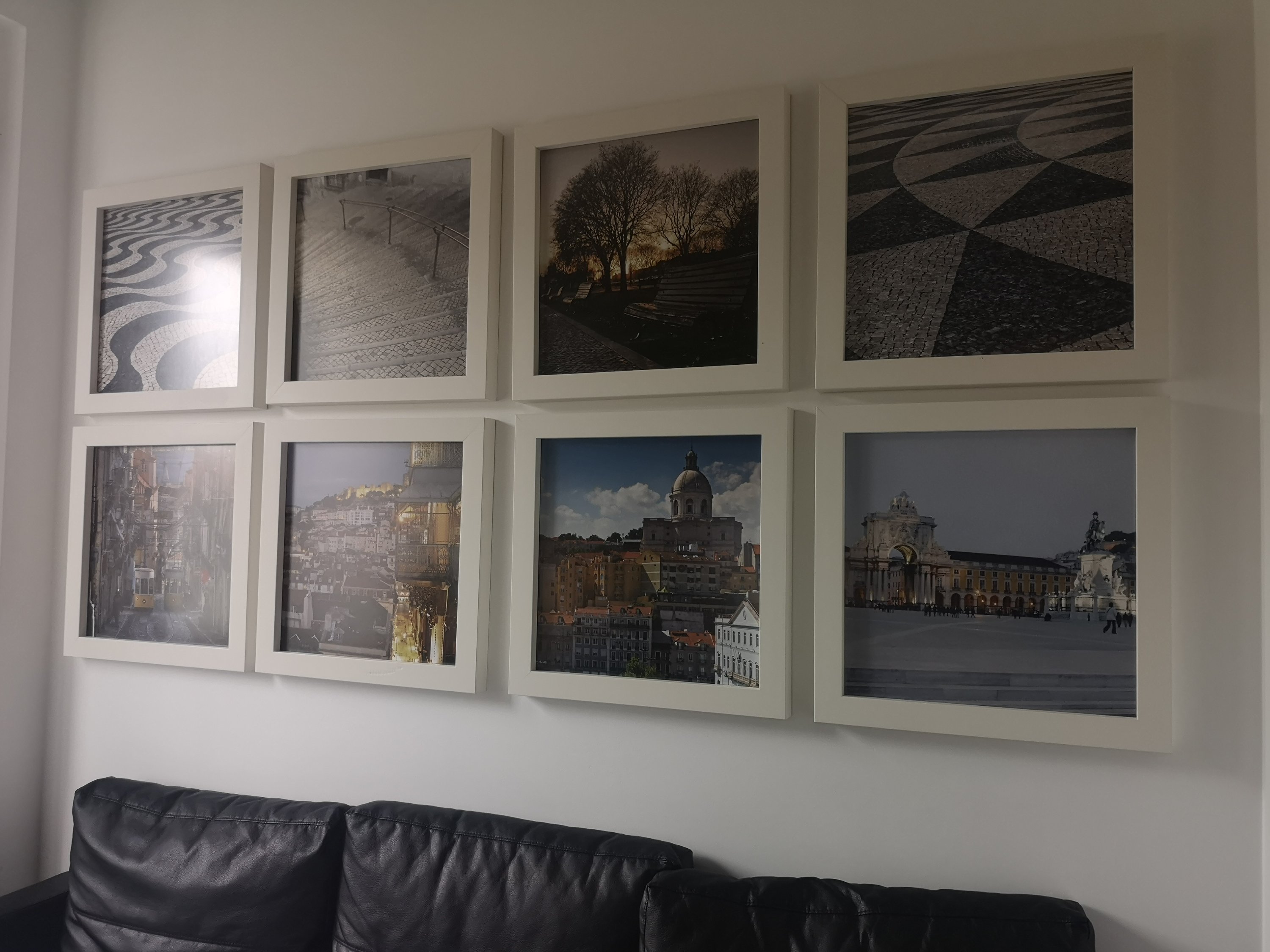 A divisão principal estava separada por uma estrutura de madeira móvel que criava, desta forma, dois espaços distintos, o quarto e uma sala, onde se podiam observar várias fotos de Lisboa.
