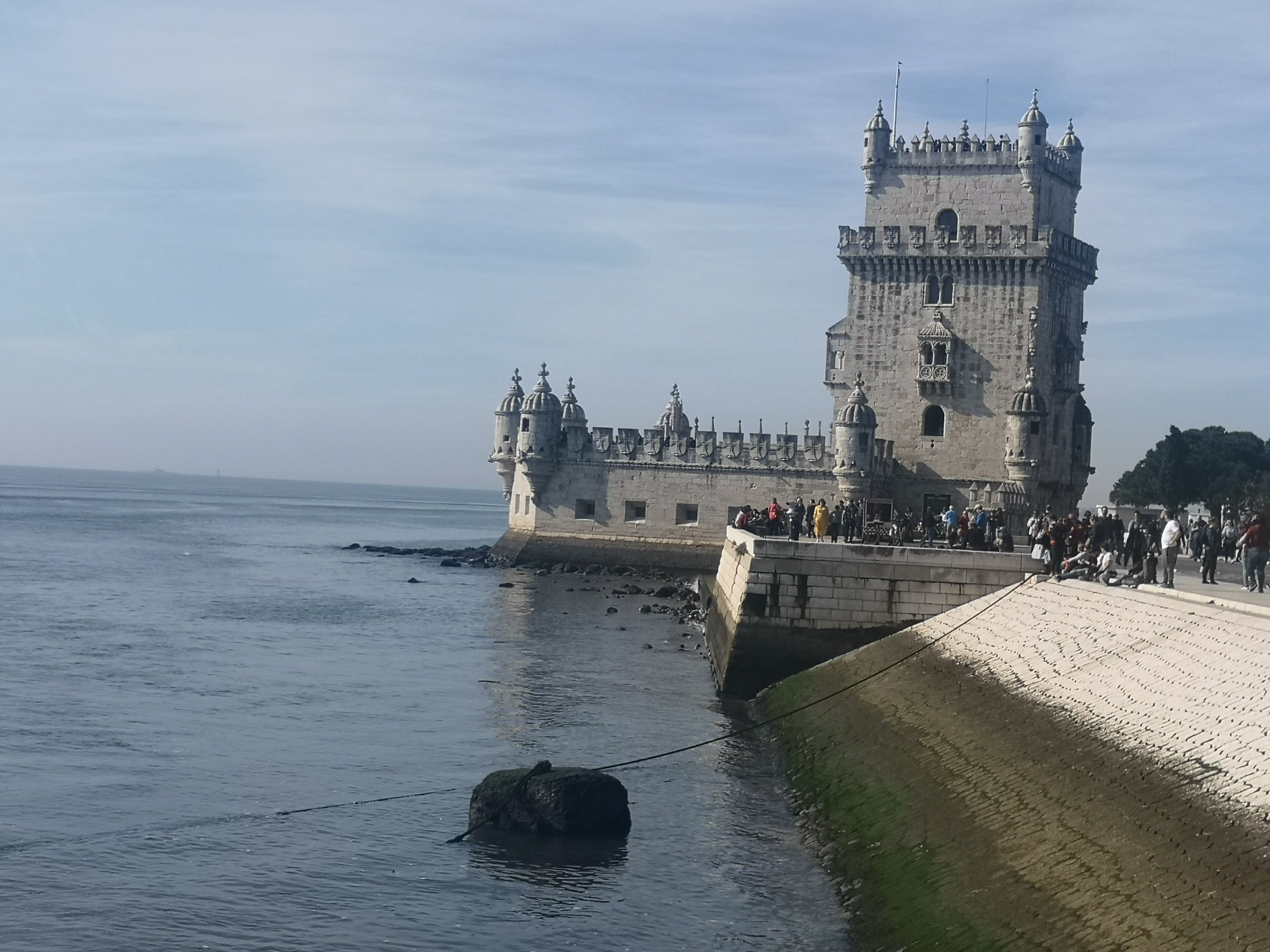 Com filas de turistas, muito grandes, para visitar a magnífica Torre de Belém, acabei por só admirá-la do lado de fora, deixando para outro dia uma visita, mais pormenorizada, ao seu interior.