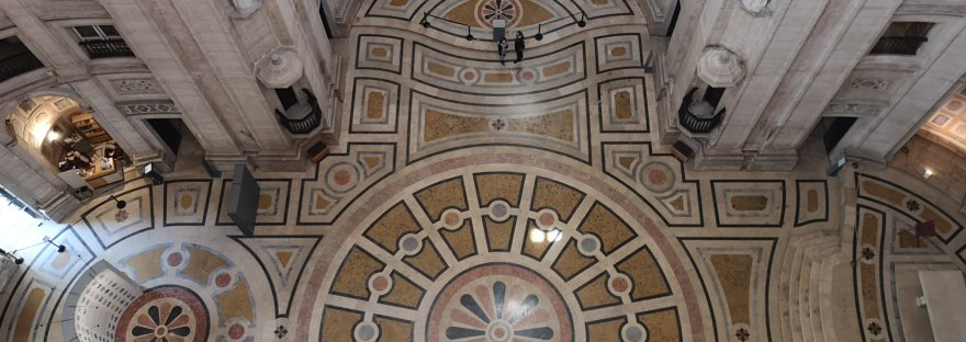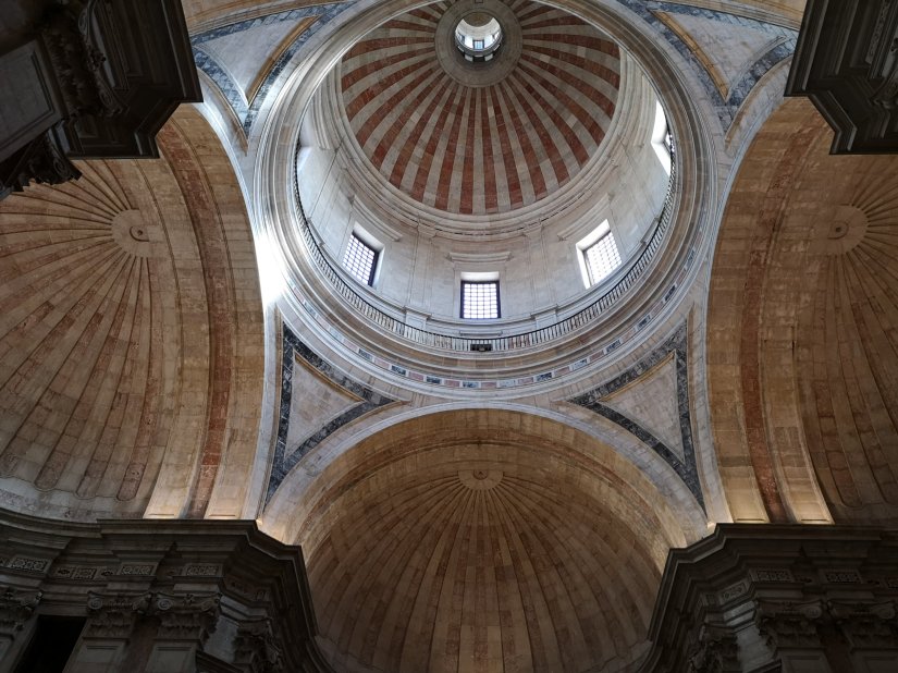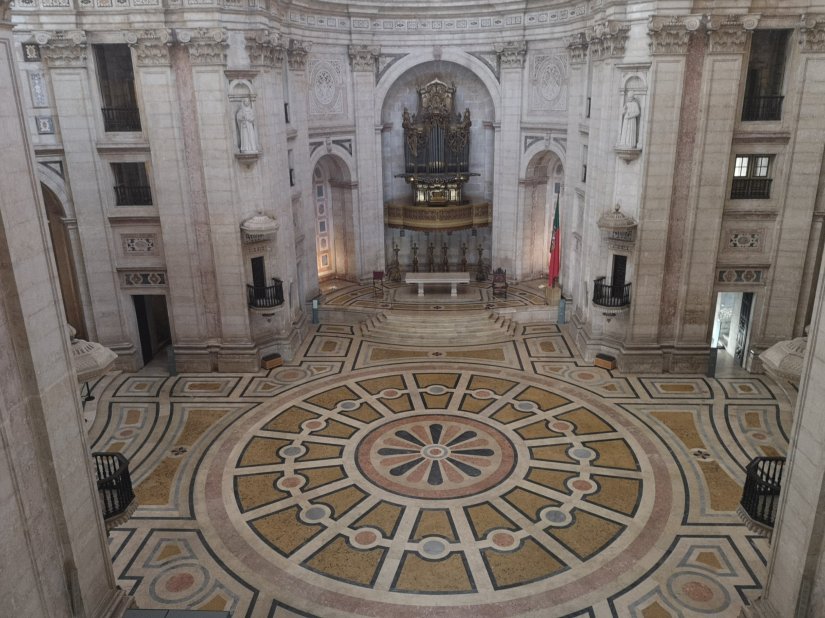 Começando a subir os inúmeros degraus existentes, cheguei ao coro-alto. Um espaço organizado em anfiteatro, reservado à entoação de cânticos religiosos. A sua localização, mais frontal, permite ter uma vista fantástica sobre a nave central e as suas semicúpulas. Lá ao fundo, no altar-mor da Igreja destaca-se o belo órgão do século XVIII.
