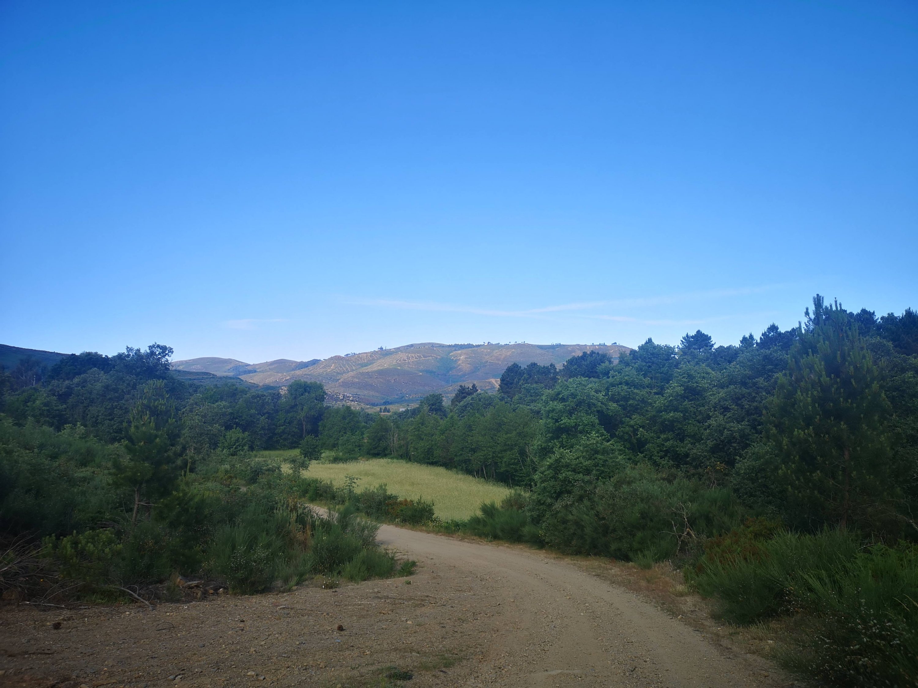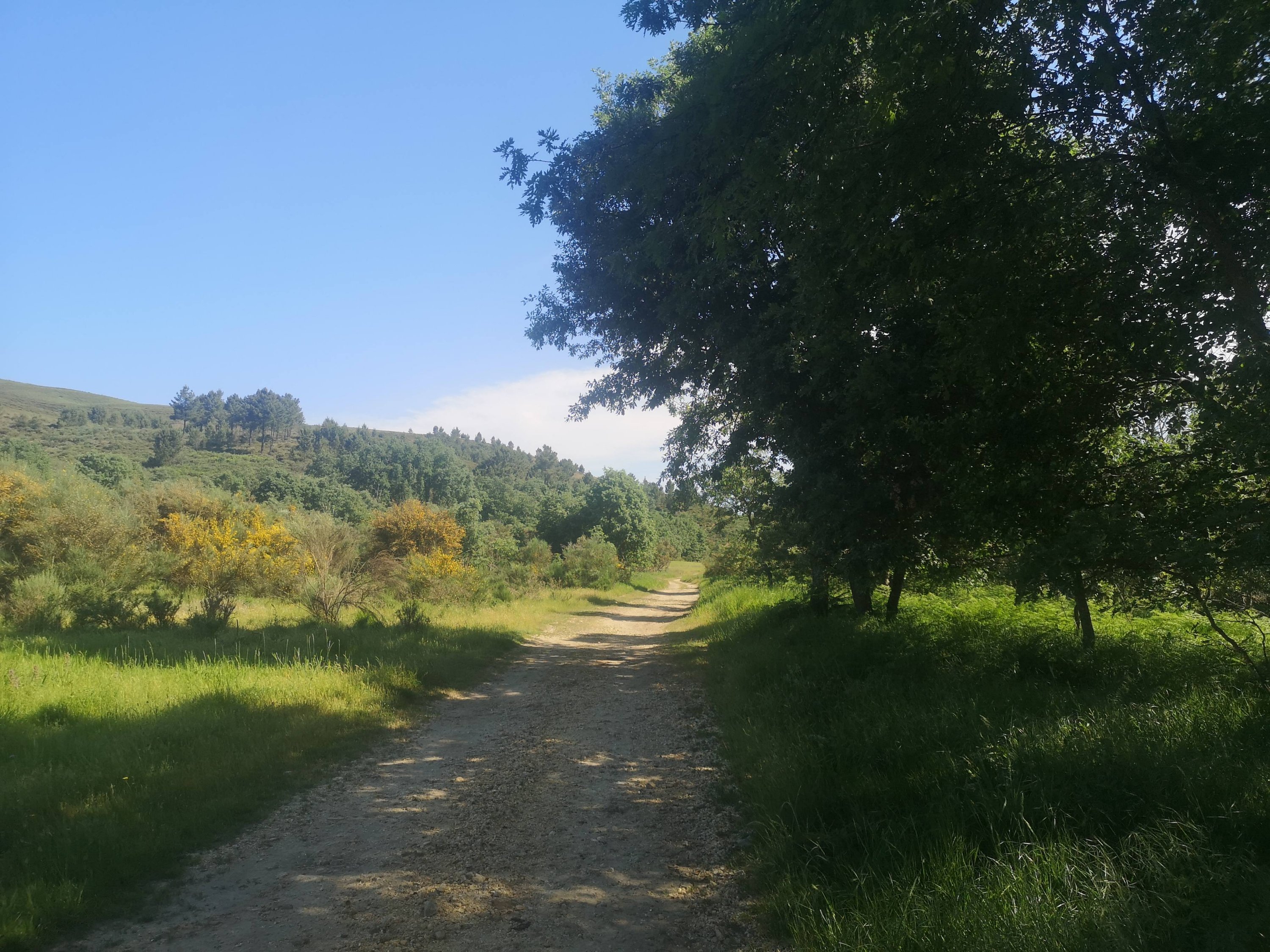 Depois de passar por terrenos mais secos, finalmente atravessamos os pastos e campos de cultivo da localidade de Sapiãos, que se estendem ao longo do vale do rio Terva, criando belíssimas paisagens verdejantes.