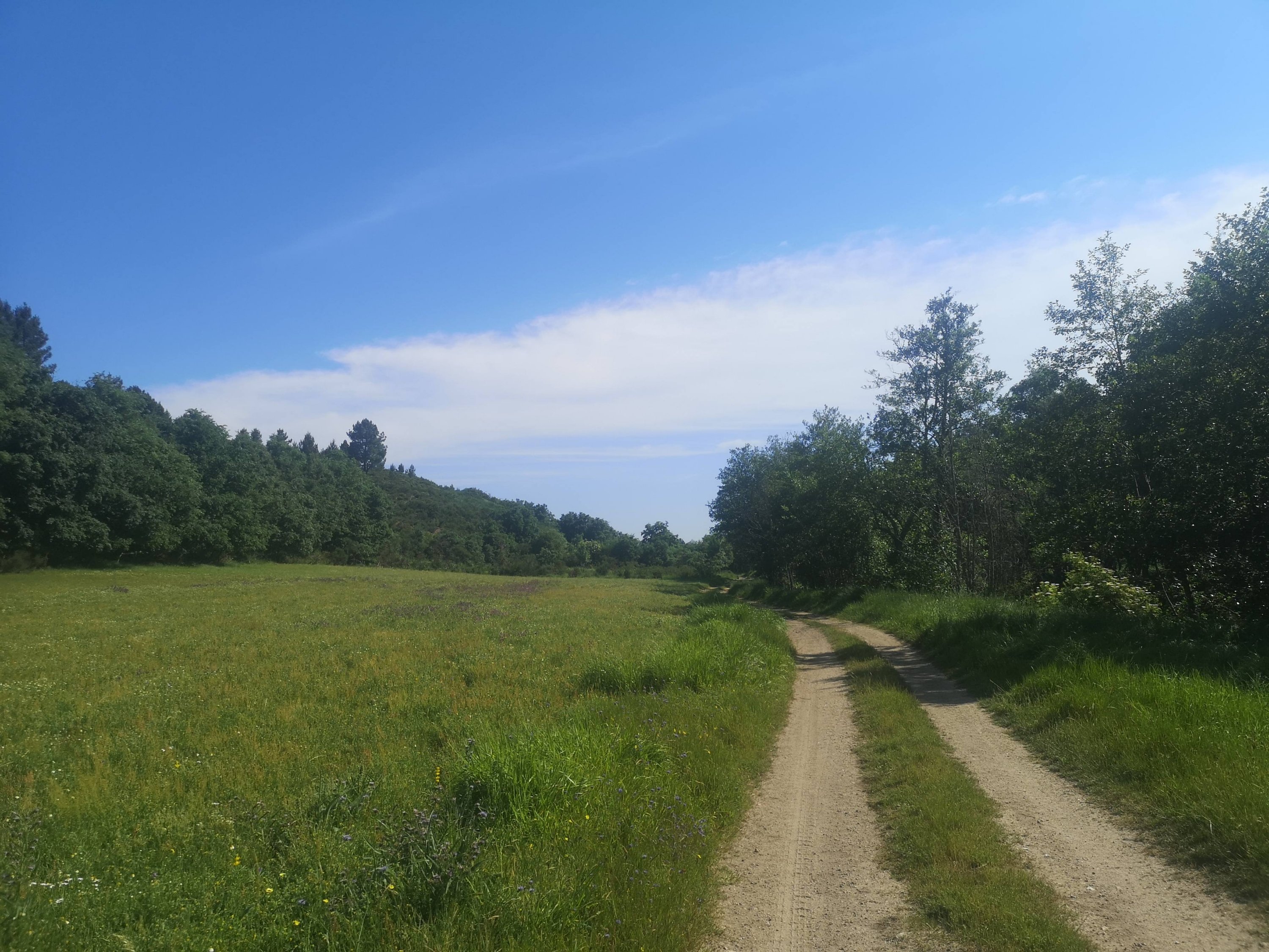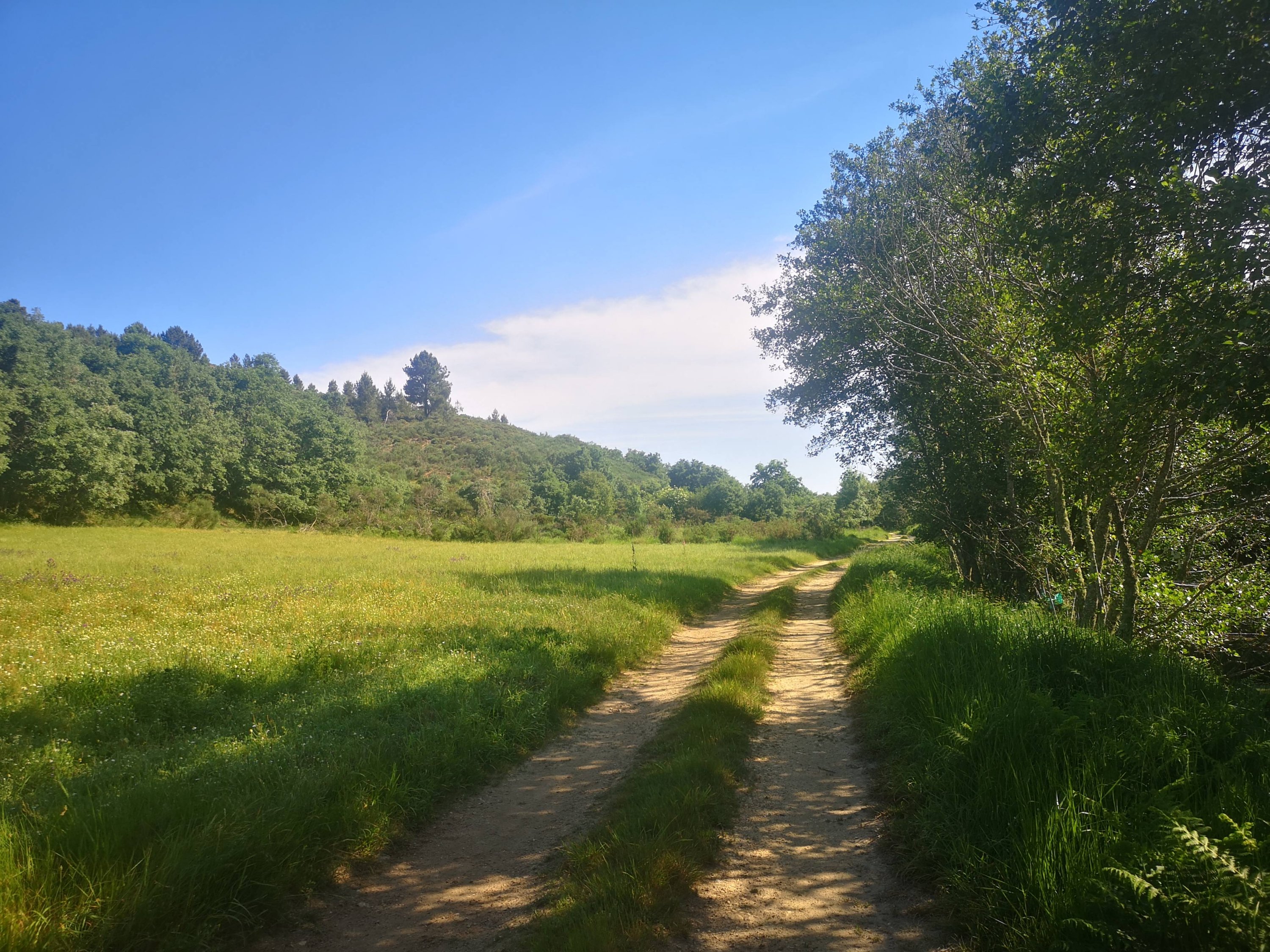 As árvores dão lugar a pastos, lameiros e terrenos de cultivo. Estamos na parte superior dos terrenos da localidade da Granja.