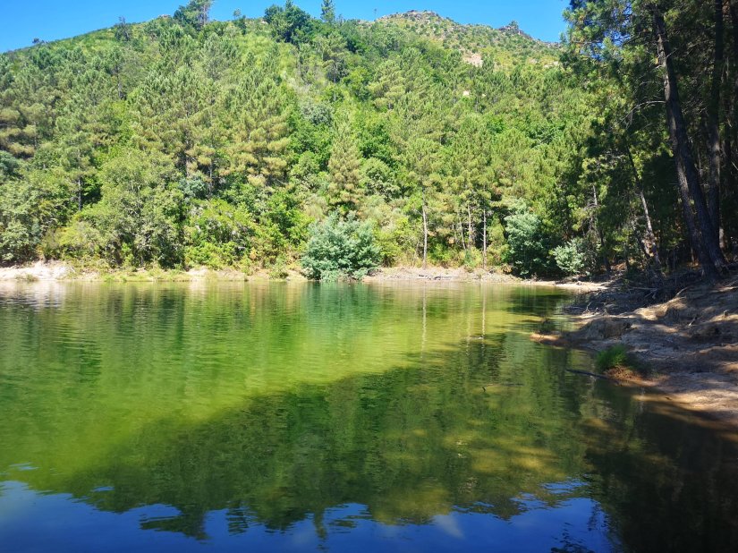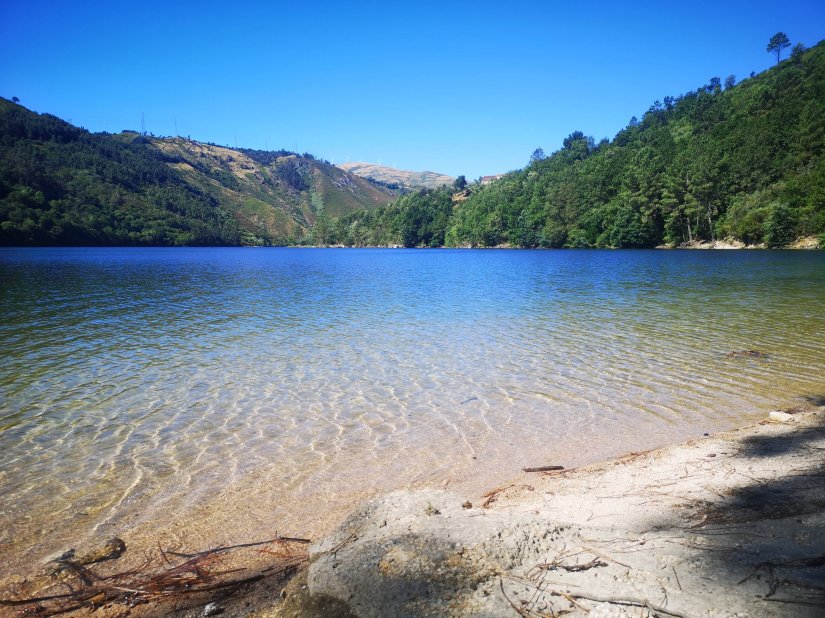 Uma água calma e limpa. Umas paisagens envolventes lindíssimas. Um pequeno areal que tornava mais fácil o acesso à água. Uma tranquilidade sem igual.