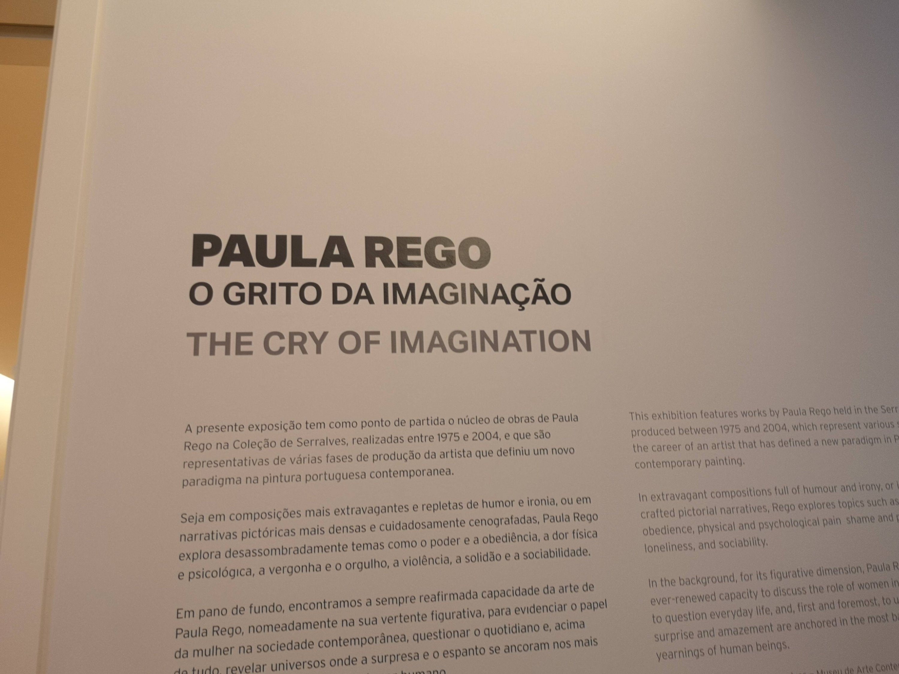 “O Grito da Imaginação” da pintora Paula Rego trata-se de uma exposição monográfica, resultante de uma parceria entre este museu e a Fundação Serralves, garantindo, dessa forma, critérios elevados de qualidade.