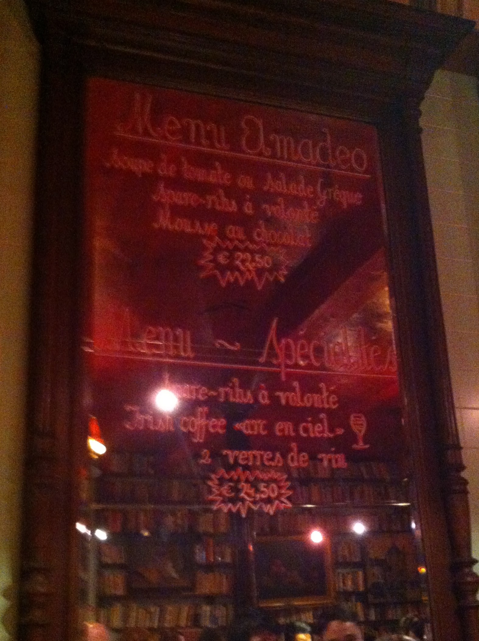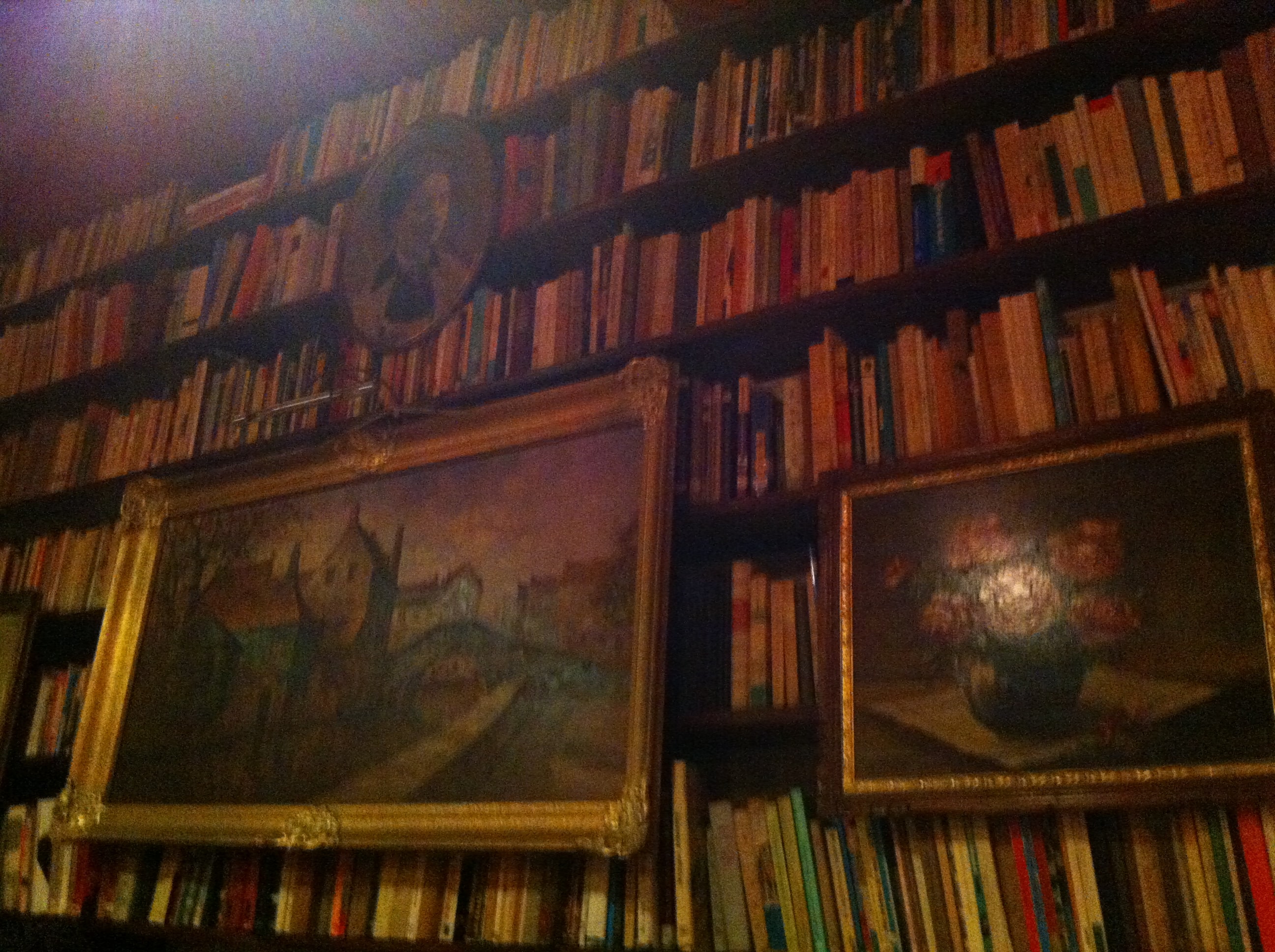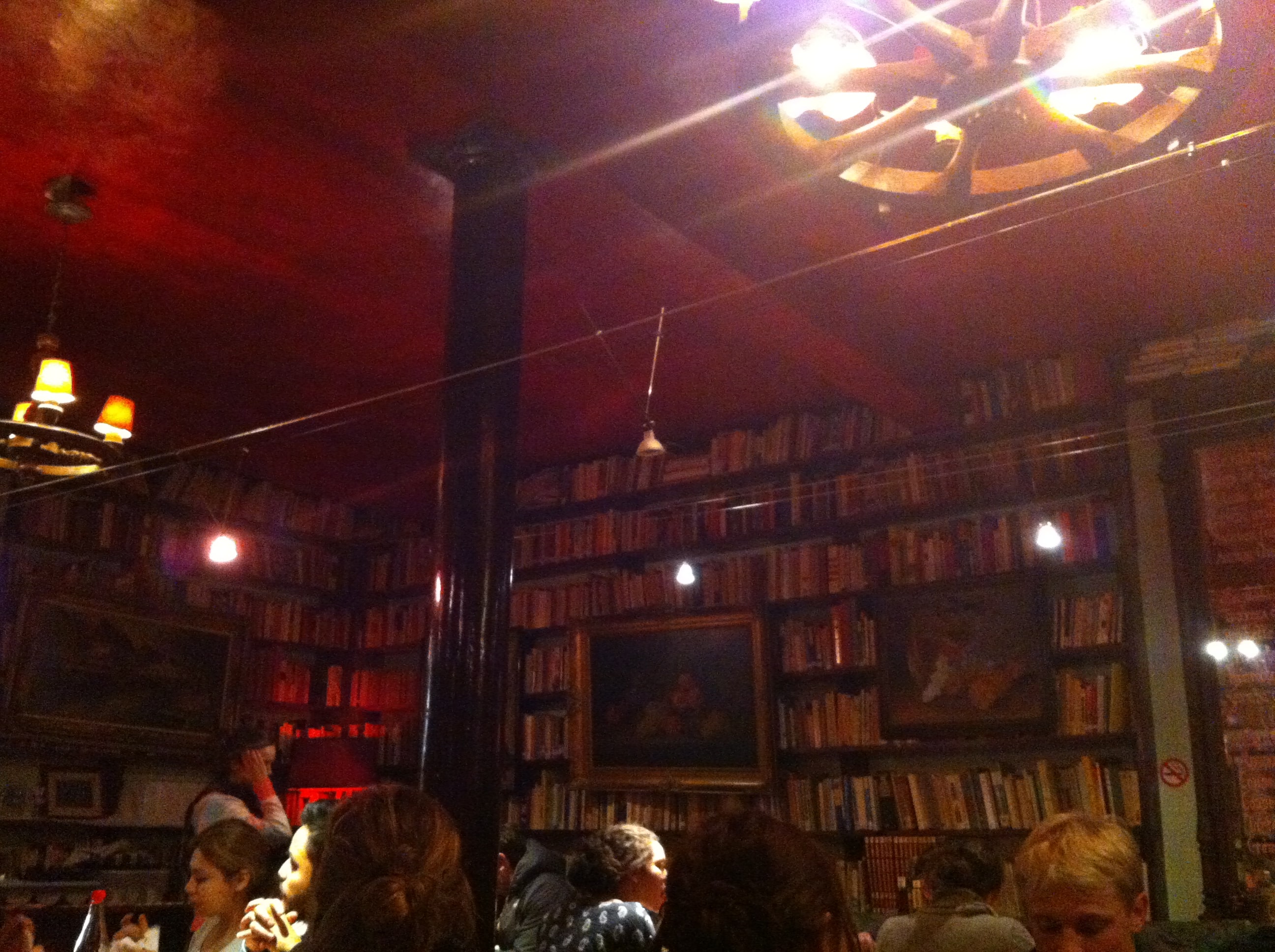 As paredes do restaurante são todas revestidas com estantes de livros, criam uma decoração muito interessante, que dá a sensação que estamos a comer no meio de uma biblioteca.