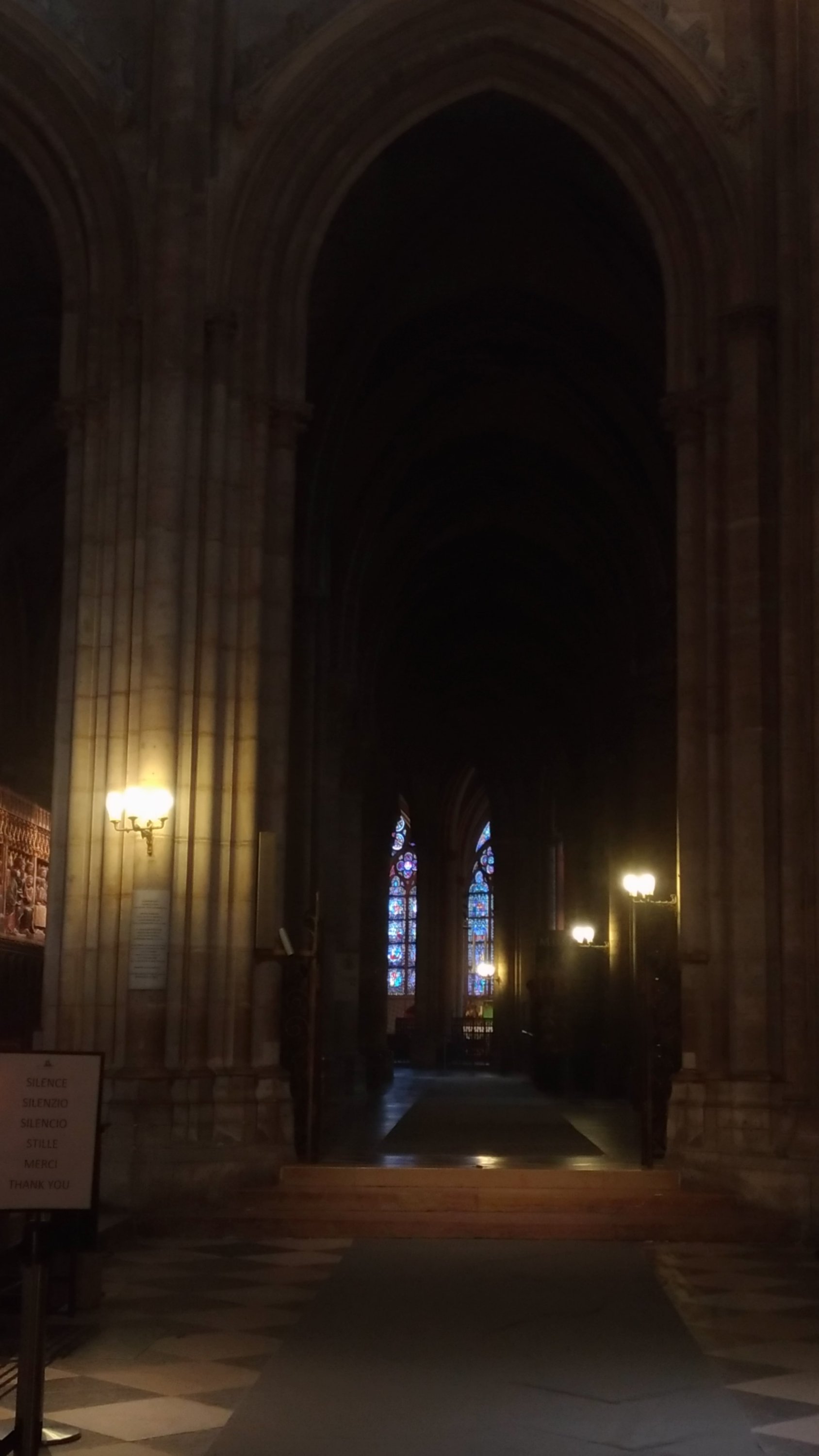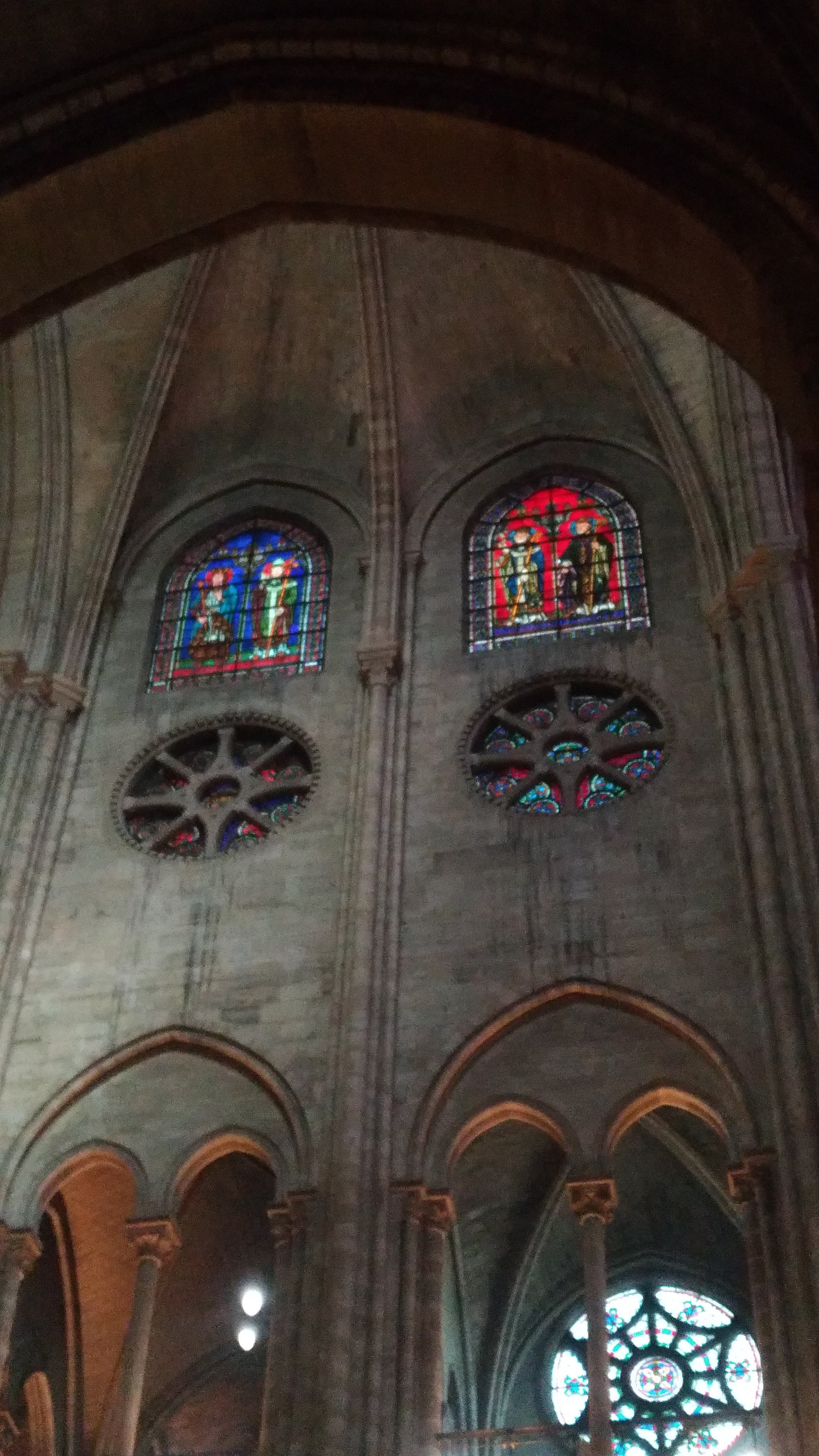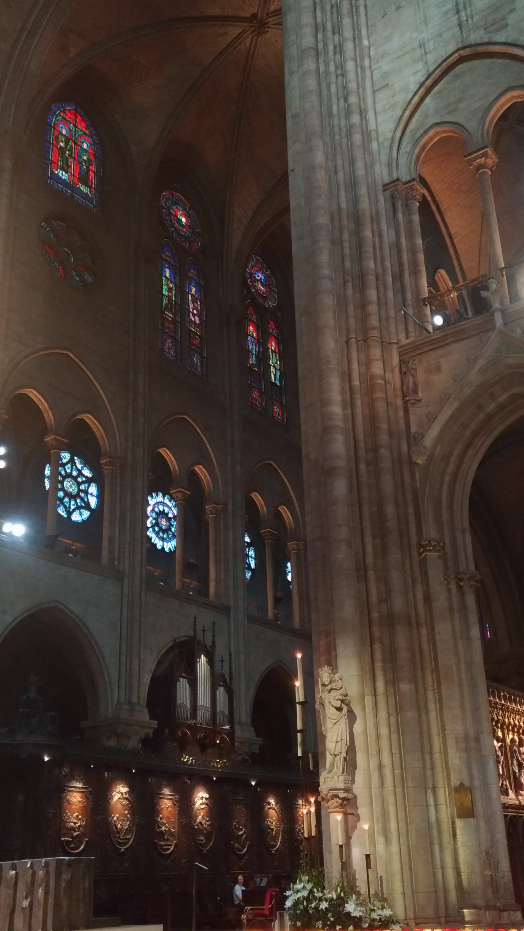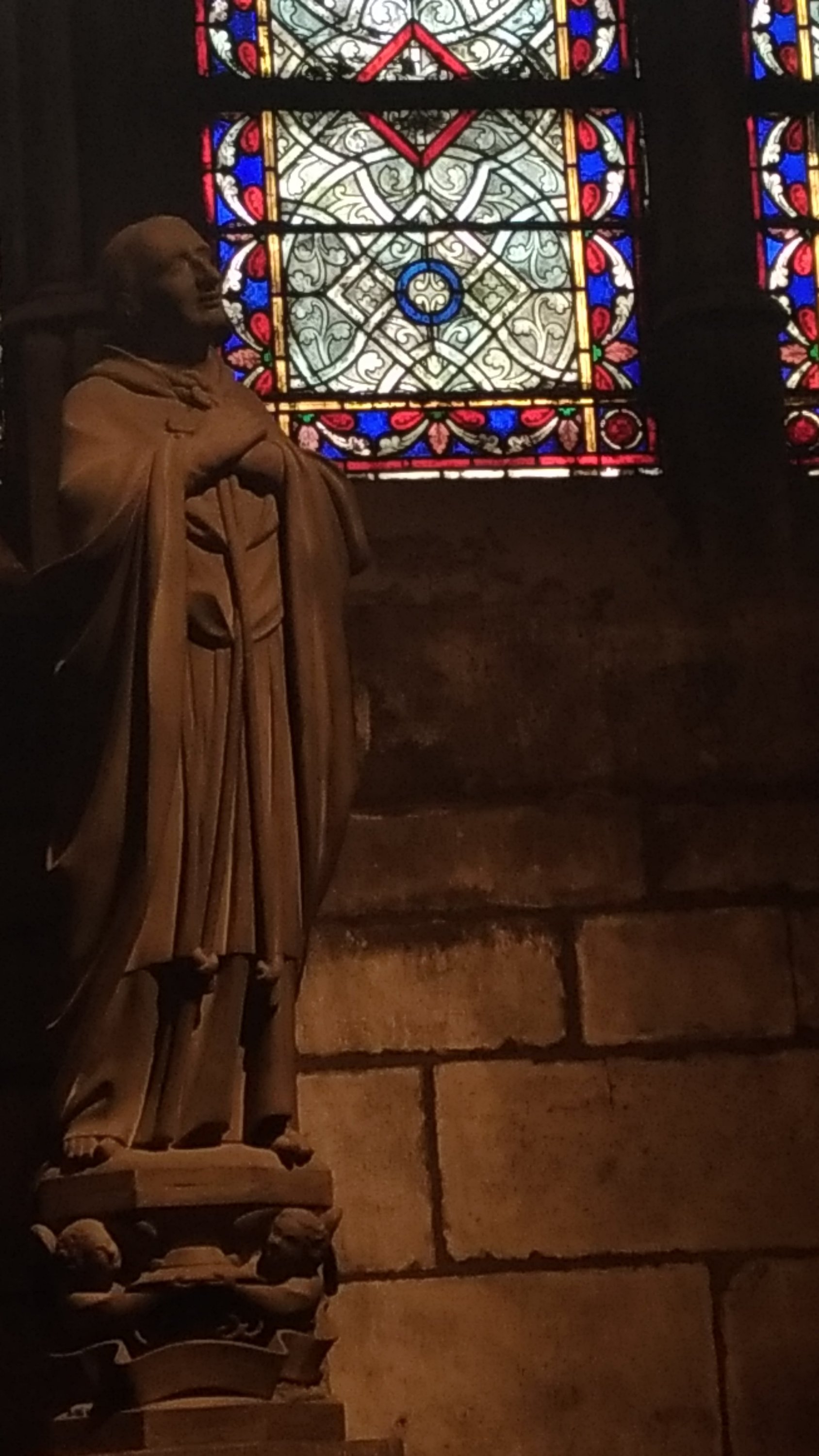 A única fonte de cor é mesmo a dos numerosos vitrais e das suas três famosas rosáceas.