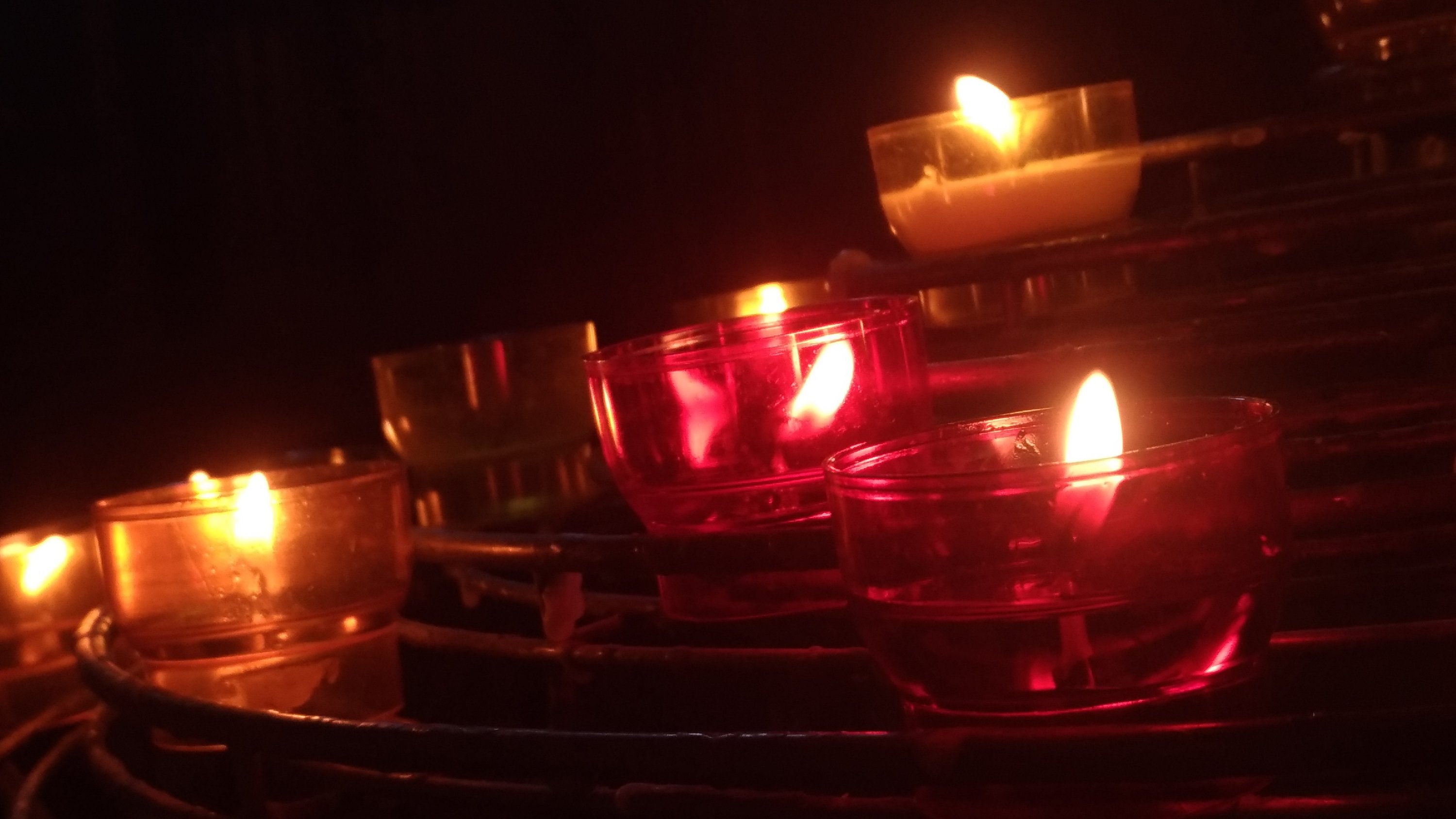 É portanto muito escura no interior. Existindo alguma luz proveniente das inúmeras velas.