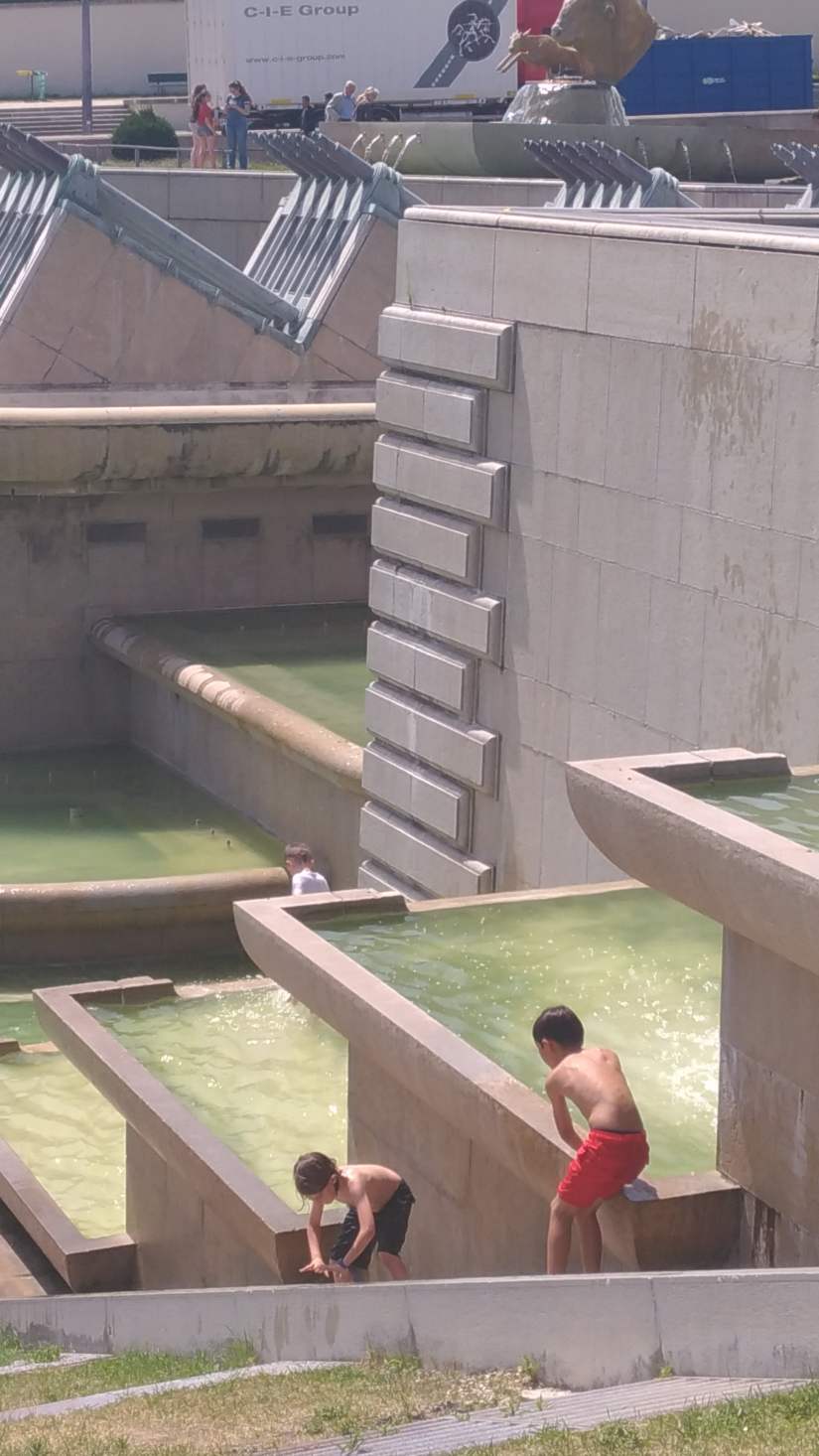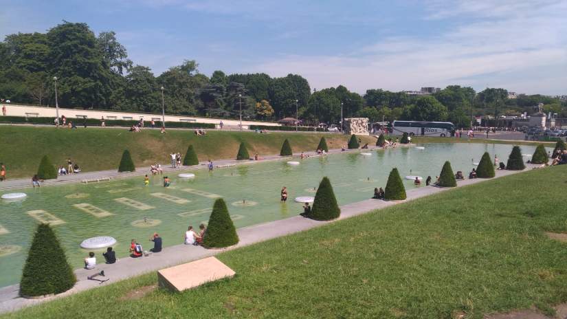 Descer e disfrutar dos jardins de Trocadéro, onde se pode ver a fonte Varsóvia ao centro, ladeada por inúmeros chafarizes e quedas de água.