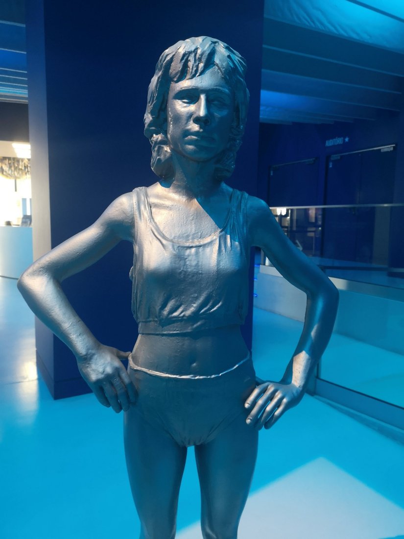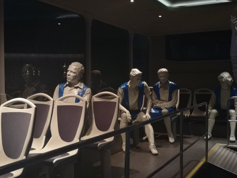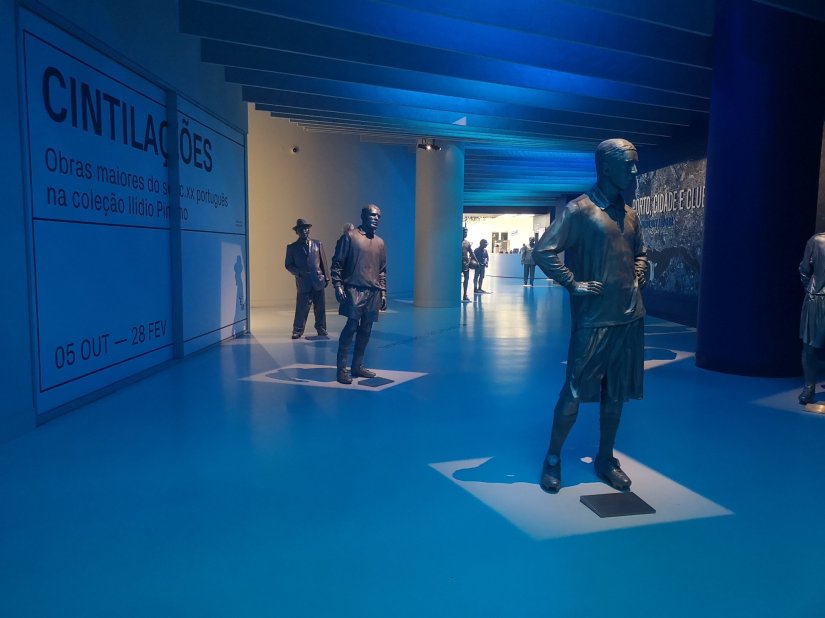 Antes das salas de exposição, um hall de entrada acolhe estátuas das principais figuras do clube.