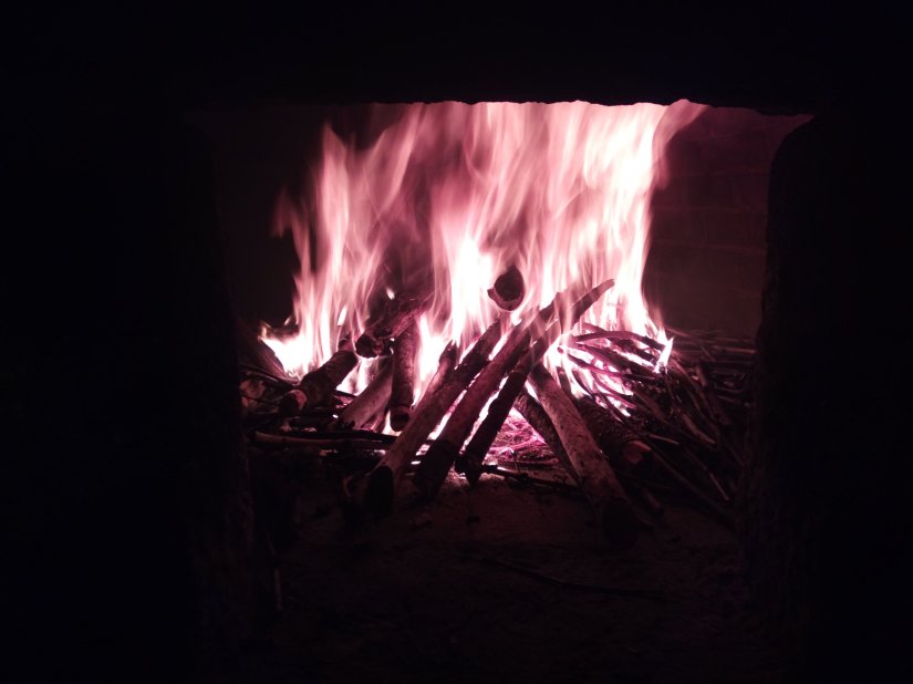 O forno de lenha é aceso, com alguma antecedência e com lenha mais miúda, para ir aquecendo, o que torna o local agradável para se estar, devido à temperatura simpática aí criada.