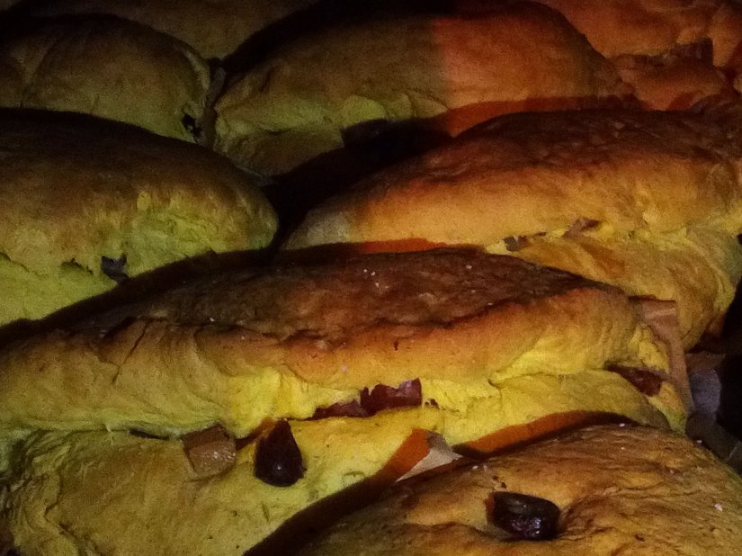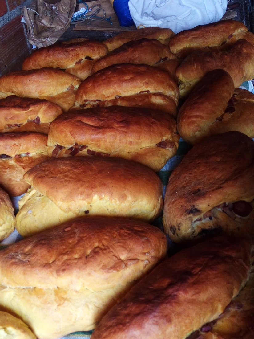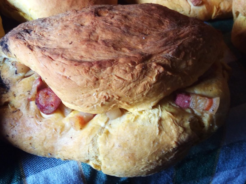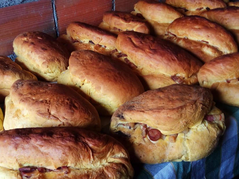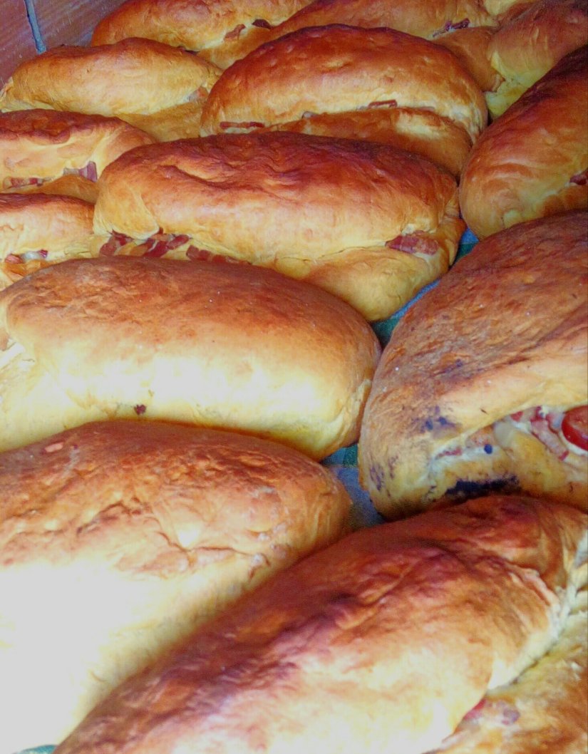 Estes são recheados com as melhores carnes de presunto, entremeada fumada, salpicão, linguiça…e deixados a levedar mais um pouco.