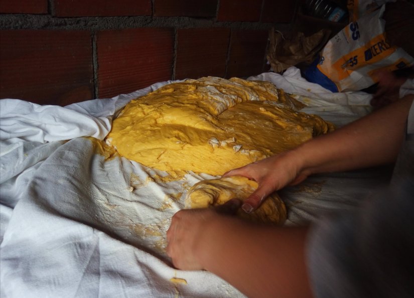 A massa tem de levedar bastante, para tal, é, portanto, toda coberta com panos, para a manter mais quente o que ajuda neste processo.