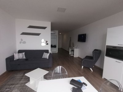 Gostei logo do apartamento, localizado na Pederneira, com boas instalações e com uma enorme varanda virada para o mar.