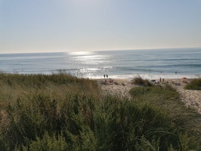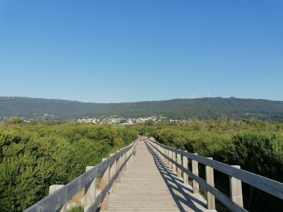 O cenário envolvente é de grande beleza natural, pois conta com uma zona de vegetação e dunas, protegidas por passadiços de madeira.