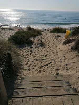 Como adoro caminhar e tinha alugado uma casa relativamente próxima desta praia, optei por ir, a pé, num percurso feito por entre campos de cultivo.