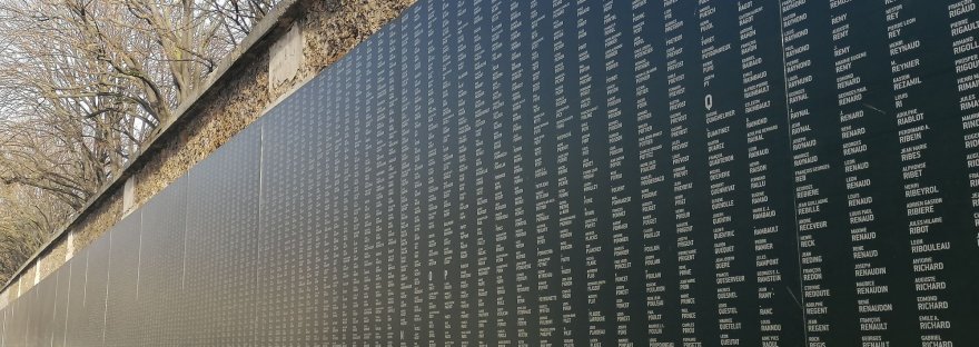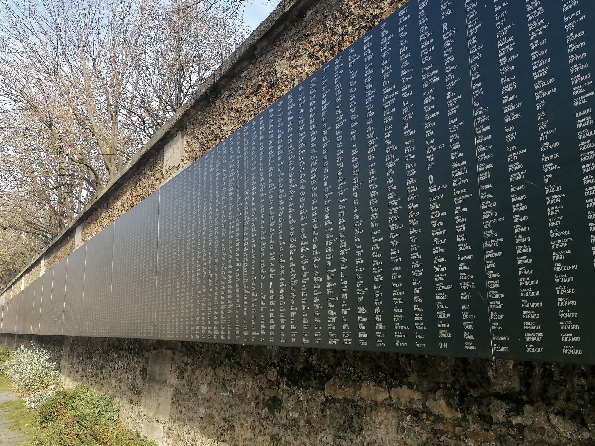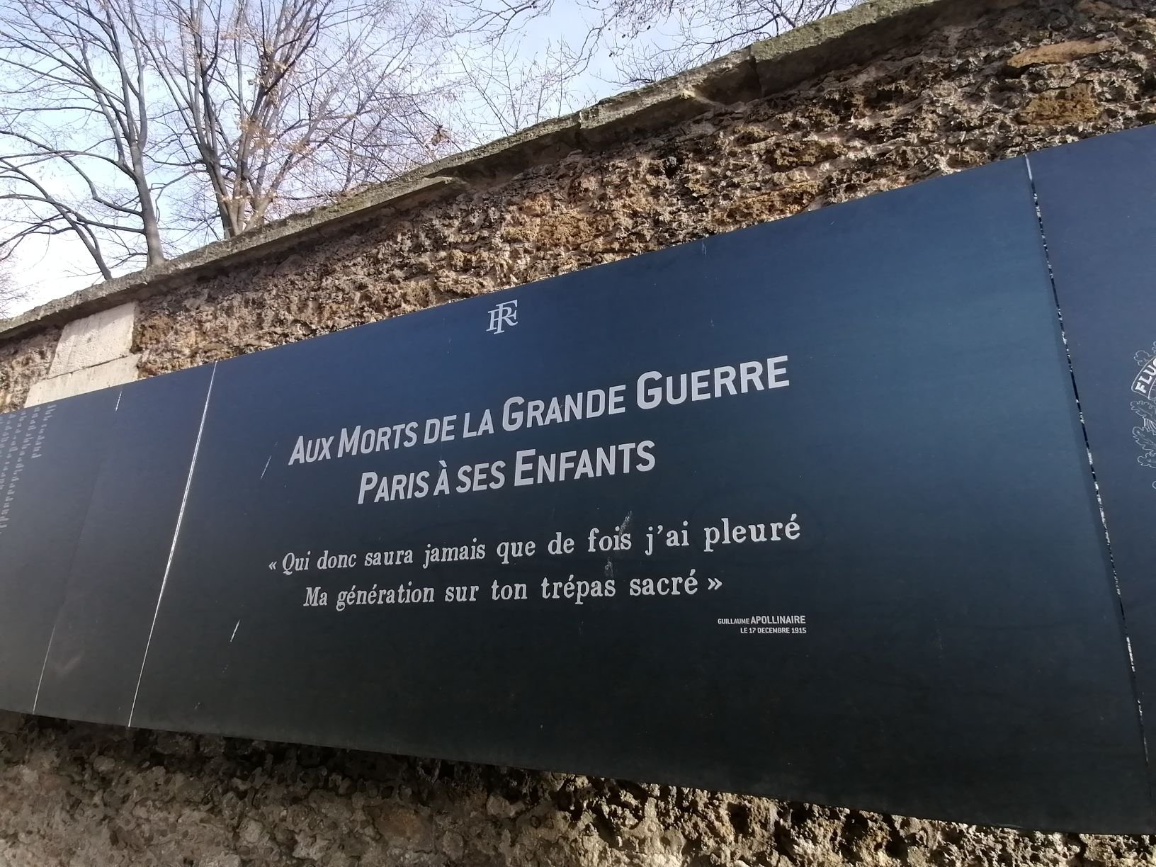 Localizado no “boulevard de Ménilmontant”, ao longo do cemitério do “Père Lachaise” este monumento com 280 metros de comprimento e 1,30 metros de altura, foi inaugurado em 2018, para recordar os 94 415 mortos e 8000 desaparecidos parisienses, na Grande Guerra, entre 1914 e 1918.