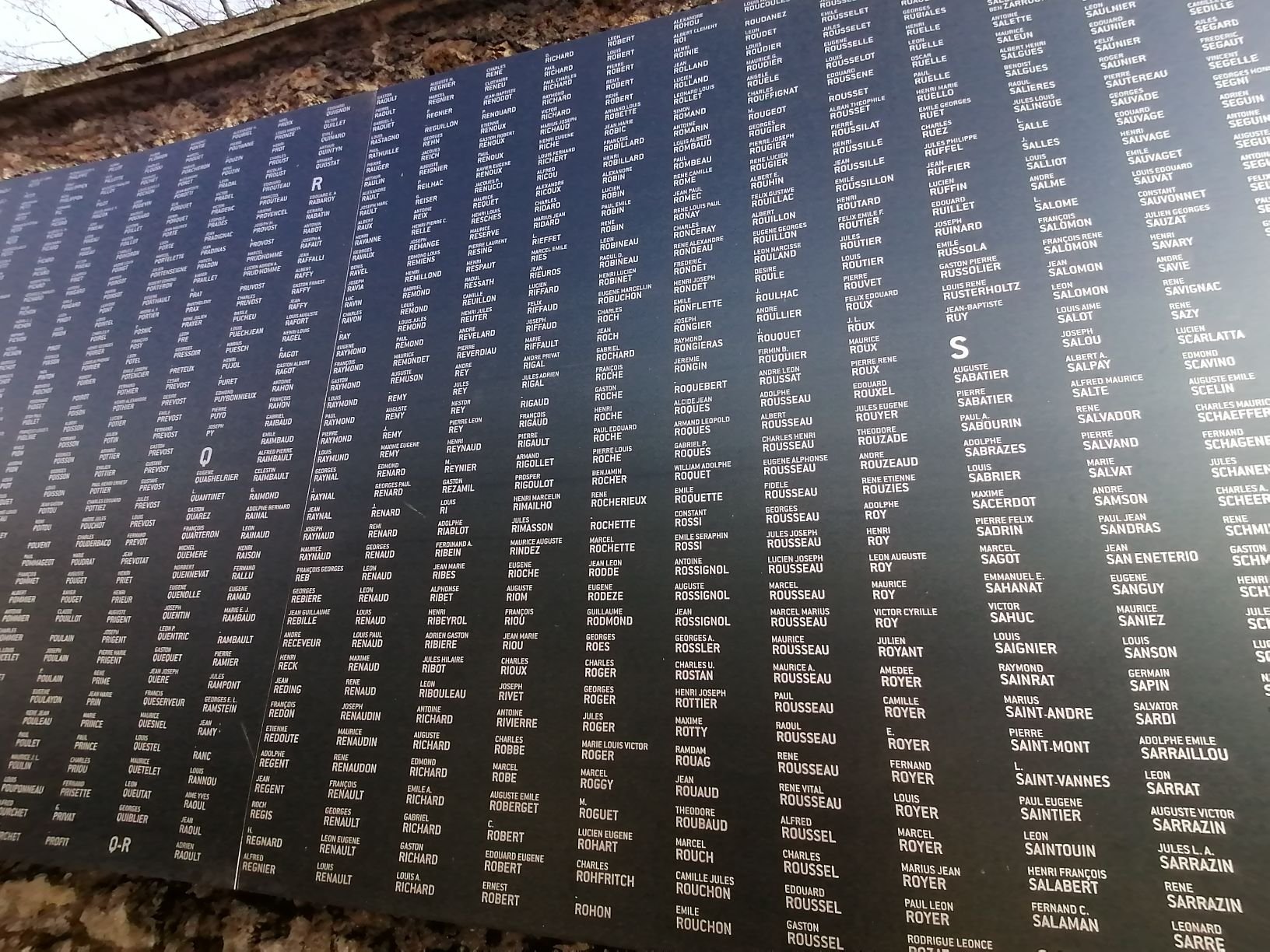 É possível percorrer, então, da praça Métivier à entrada principal do cemitério de Pére Lachaise, esta extensa lista de nomes que perderam a vida em combate ou um pouco mais tarde como consequência dos graves ferimentos sofridos, isso por ordem alfabética e em cada ano.