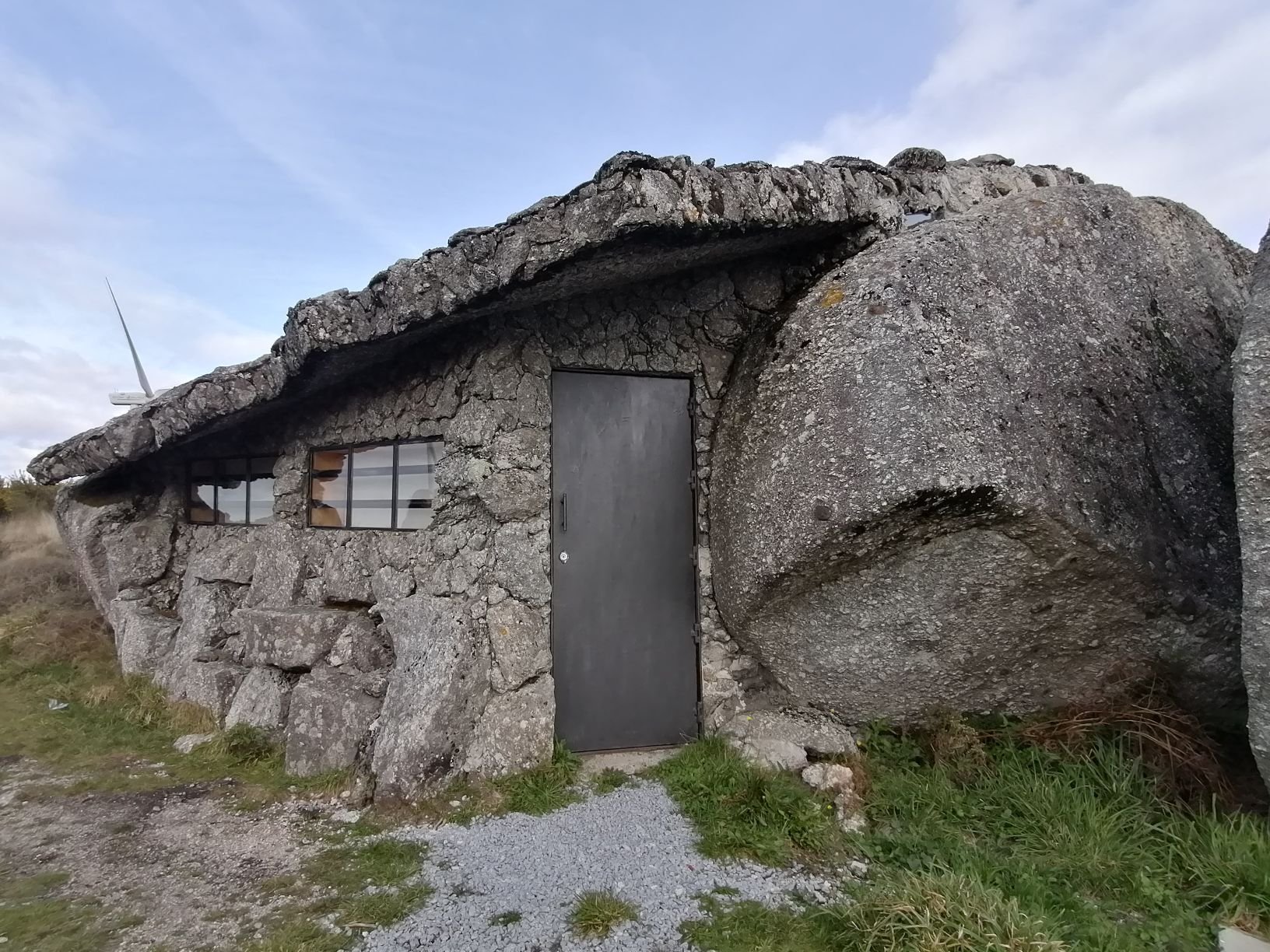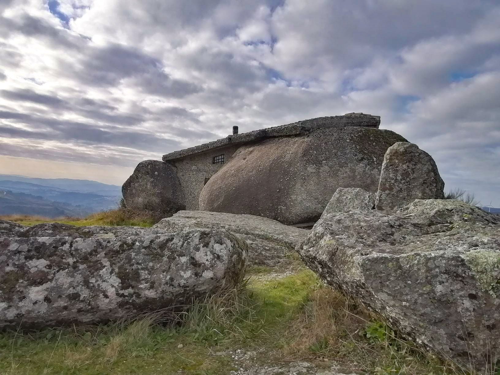 Uma casa construída entre quatro enormes penedos, no meio da serra de Fafe, junto ao parque eólico.