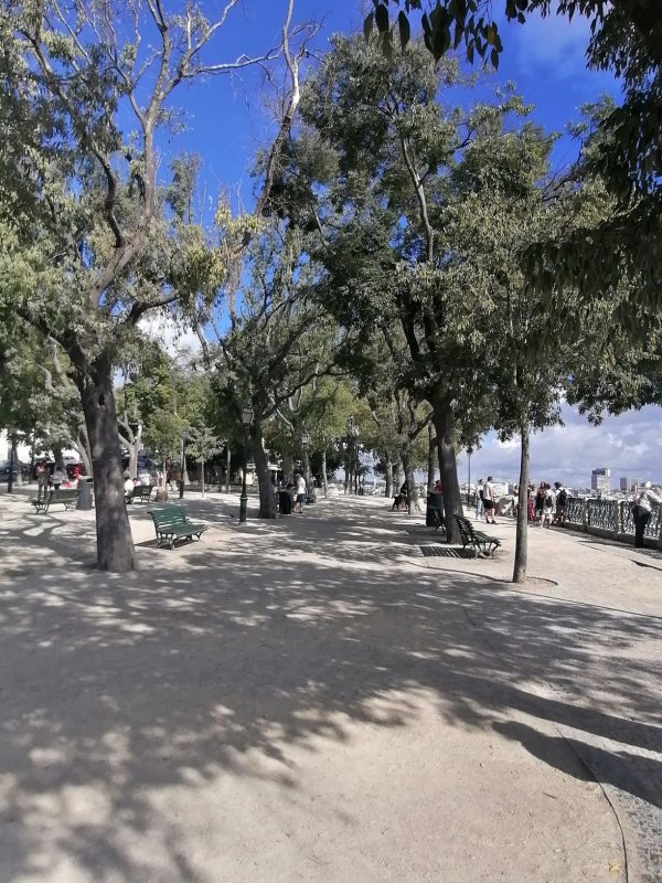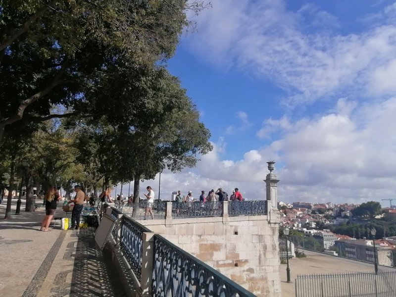 Do miradouro é possível apreciar parte da cidade, desde a Baixa à colina do Castelo de São Jorge, entre outras vistas.
