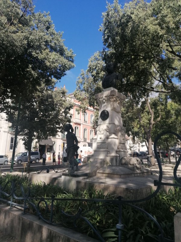 No centro do jardim, uma estátua de Eduardo Coelho, fundador do jornal Diário de Notícias, da autoria de Costa Motta, relembra os tempos mais antigos da capital, em que eram as crianças de Lisboa que distribuíam os jornais.