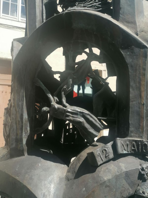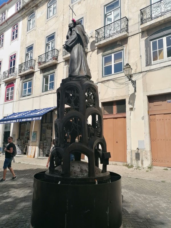 No centro do pequeno largo, a estátua metálica do santo atrai inúmeras pessoas que pedem ao santo os seus desejos e lançam moedas para a figura com a esperança que fiquem presas nesta e não caiam para serem realizados os pedidos.