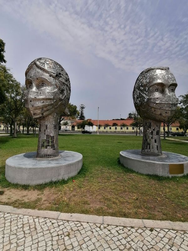 Esta representa dois enfermeiros, de máscara e está colocada na zona de Belém, junto ao Rio Tejo.