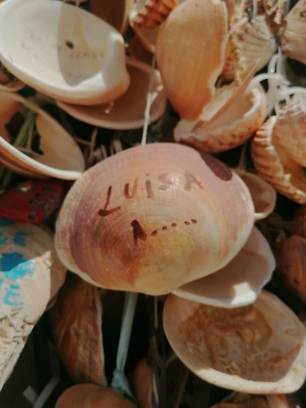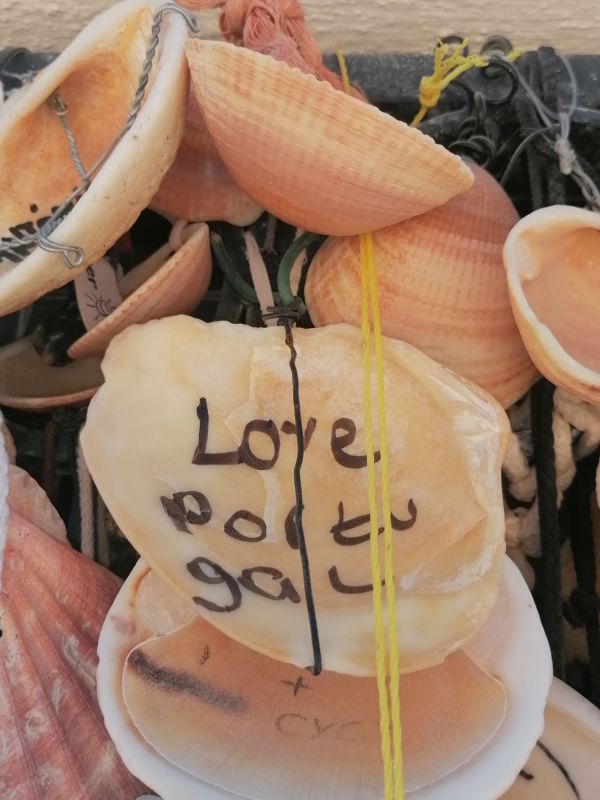 Mais perto, entendi que se tratava de conchas do mar, algumas com declarações.