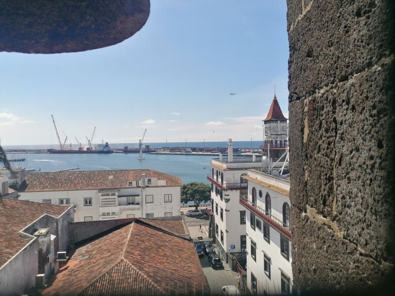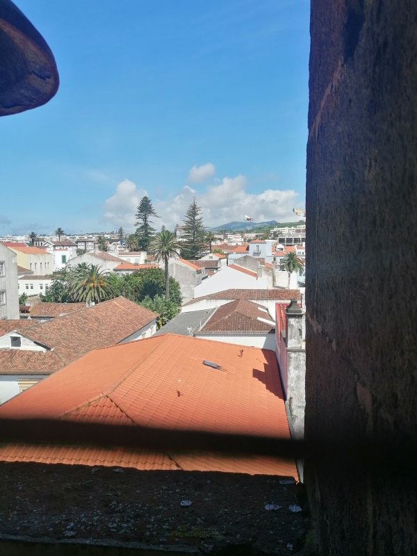 A partir dali só existem mais 20 degraus até ao topo da torre, onde se tem uma vista de 360º da cidade de Ponta Delgada, mas estes são muito, muito estreitos e em forma de espiral.