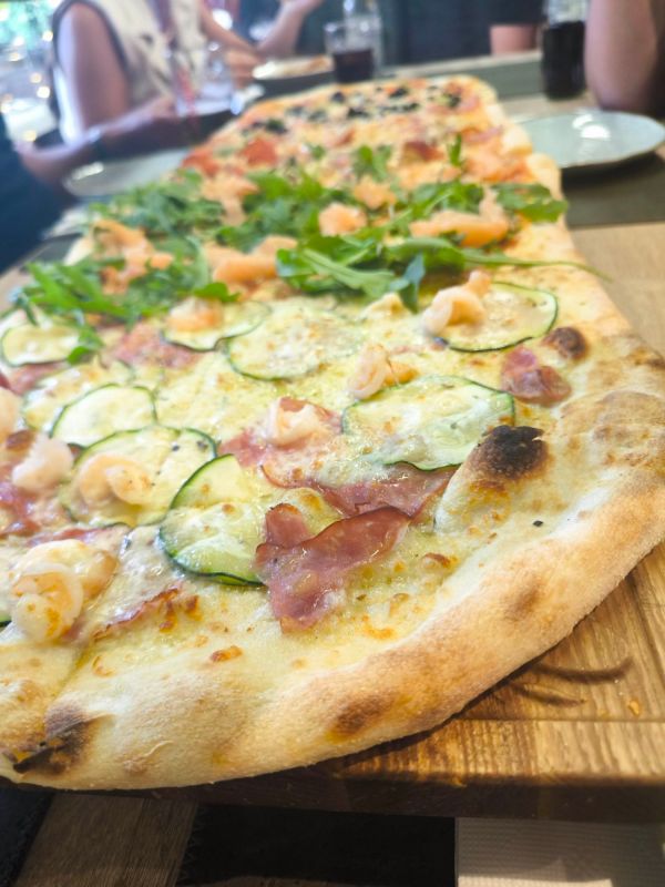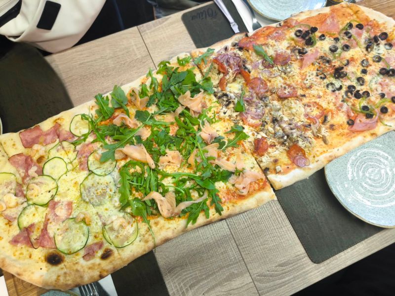 Ao pedirmos o menu, a funcionária (muito simpática) sugeriu-nos as pizzas da casa, que podem chegar a ter um metro de cumprimento.